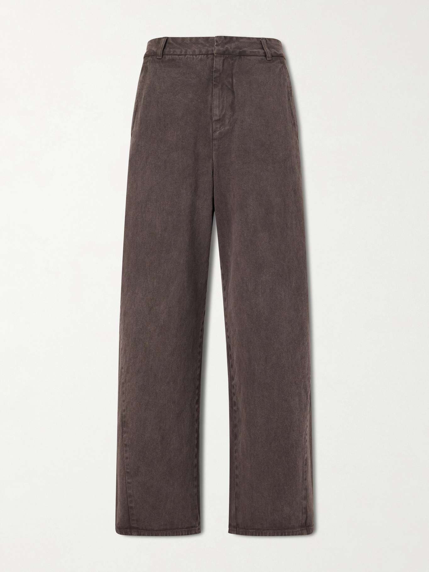 Amomento’s wide-leg jeans highlight the brand’s focus on form through garment-dyed construction. Curved seam panels shape the leg with subtle volume, giving the denim a distinctive, sculptural profile.