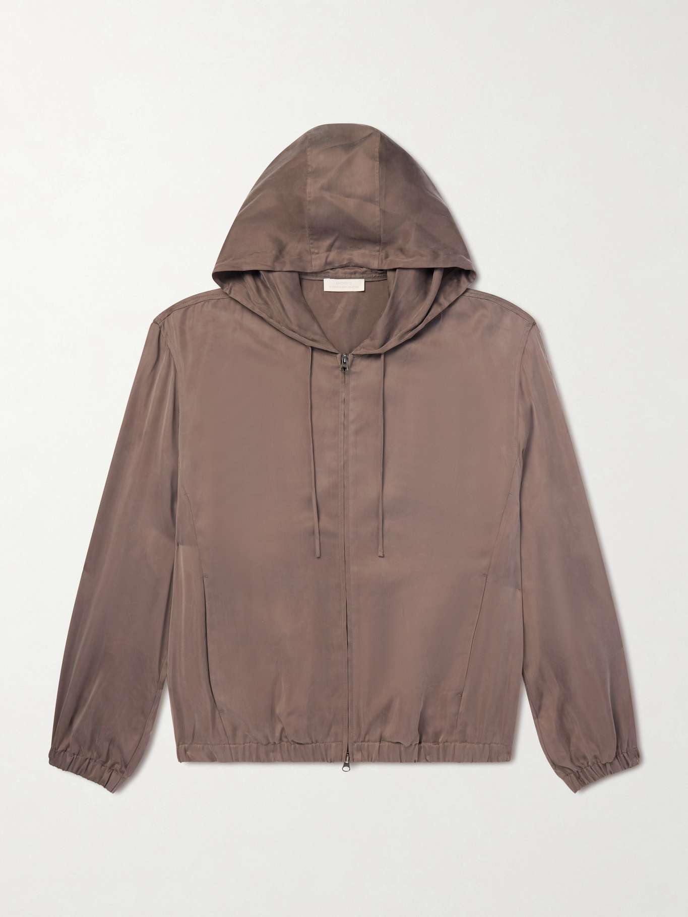 Amomento’s hooded jacket lets texture take focus. Cut from lustrous satin with a lightweight handle, it gives the casual shape a fluid, polished appearance without added detailing.