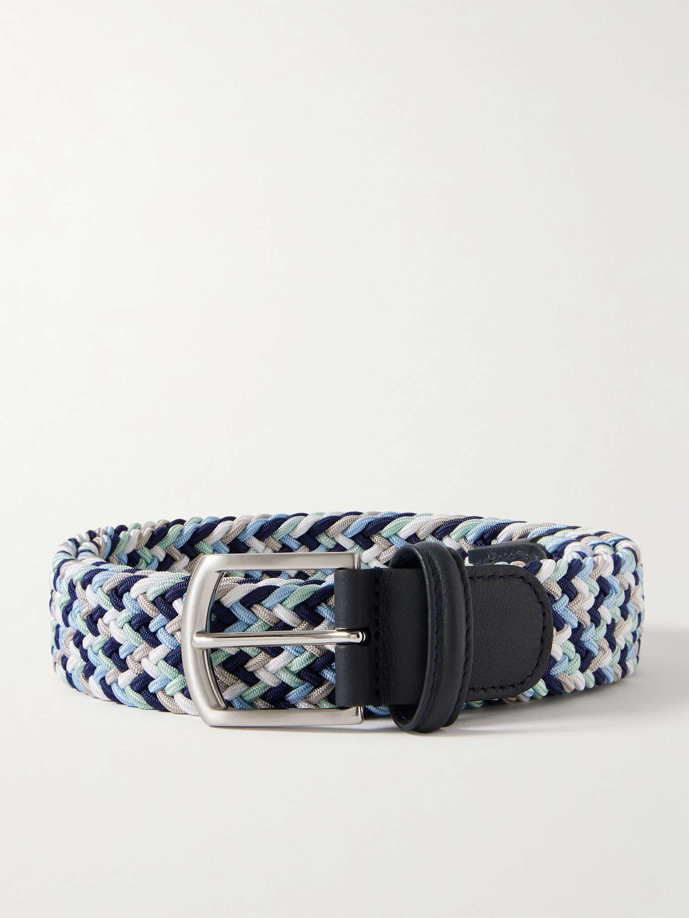 ANDERSON'S 3.5cm Leather-Trimmed Woven Elastic Belt