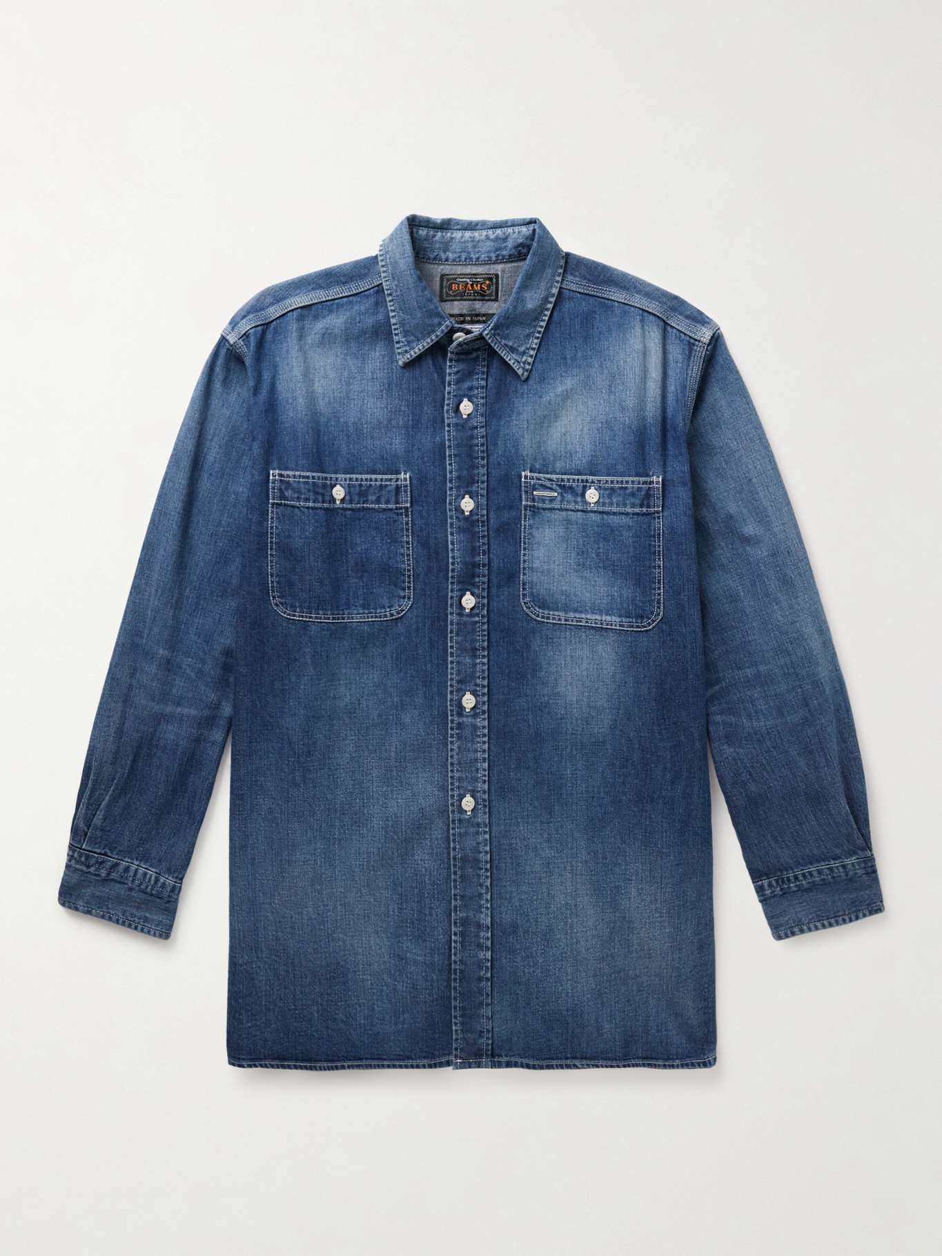 BEAMS PLUS' shirt is strategically faded to look like an authentic vintage style. Cut from 8oz. denim, it has a relaxed shape and workwear-inspired pocketing.