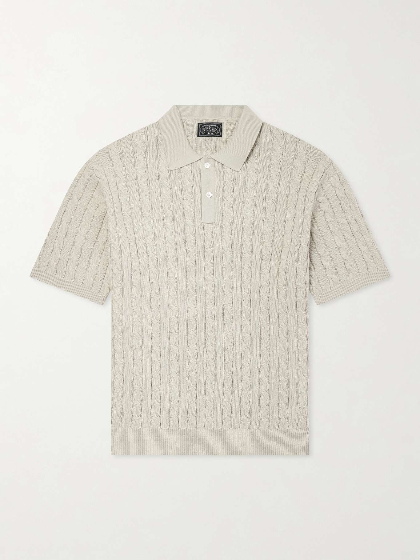BEAMS PLUS Cable-Knit Cotton Polo Shirt