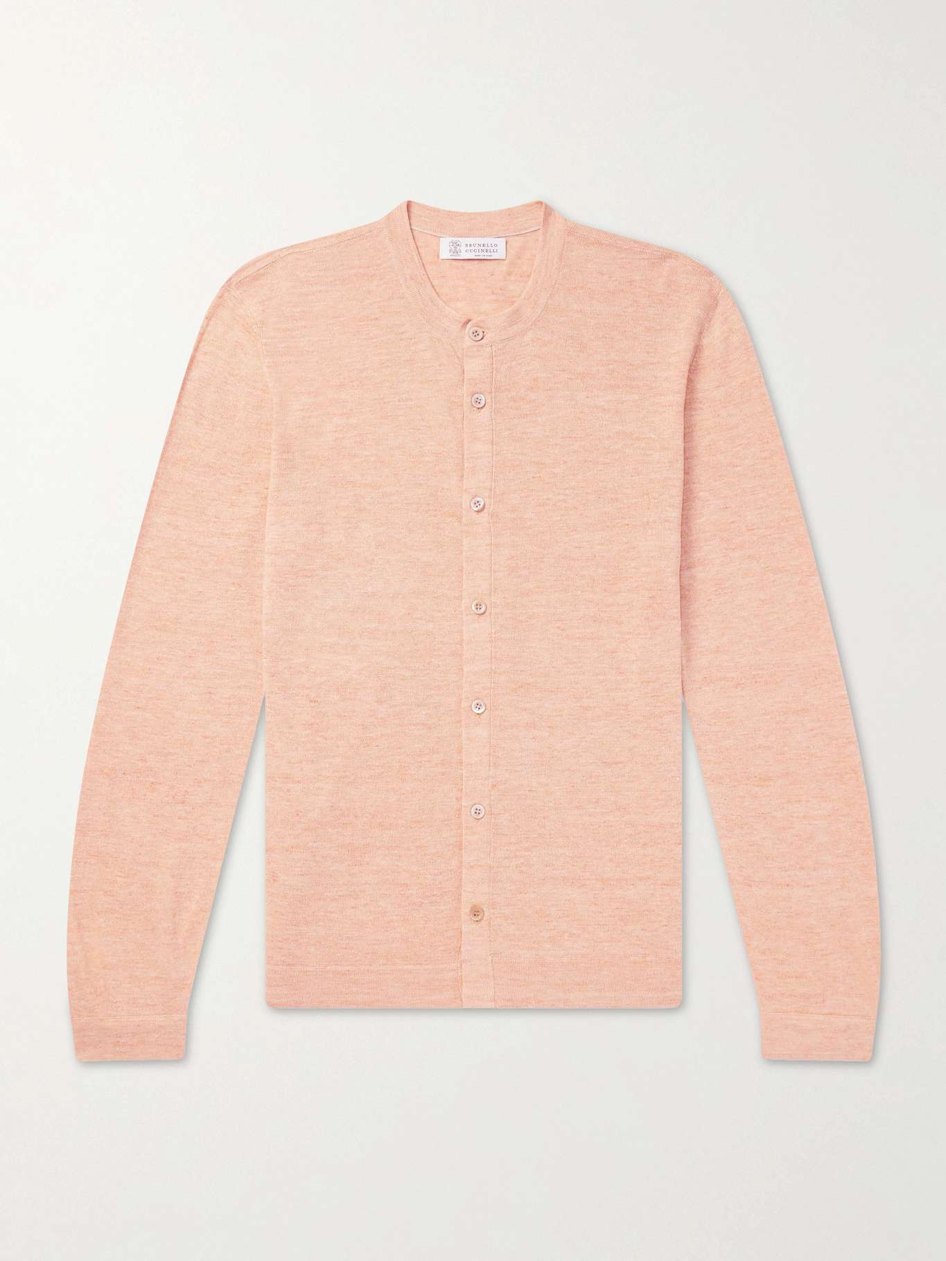 EXCLUSIVE AT MR PORTER. Brunello Cucinelli’s cardigan is knitted from a breathable linen and cotton-blend in a soft mélange peach tone. Lightweight with a gently textured handle, it’s cut in a relaxed silhouette that layers comfortably through warm-weather months.