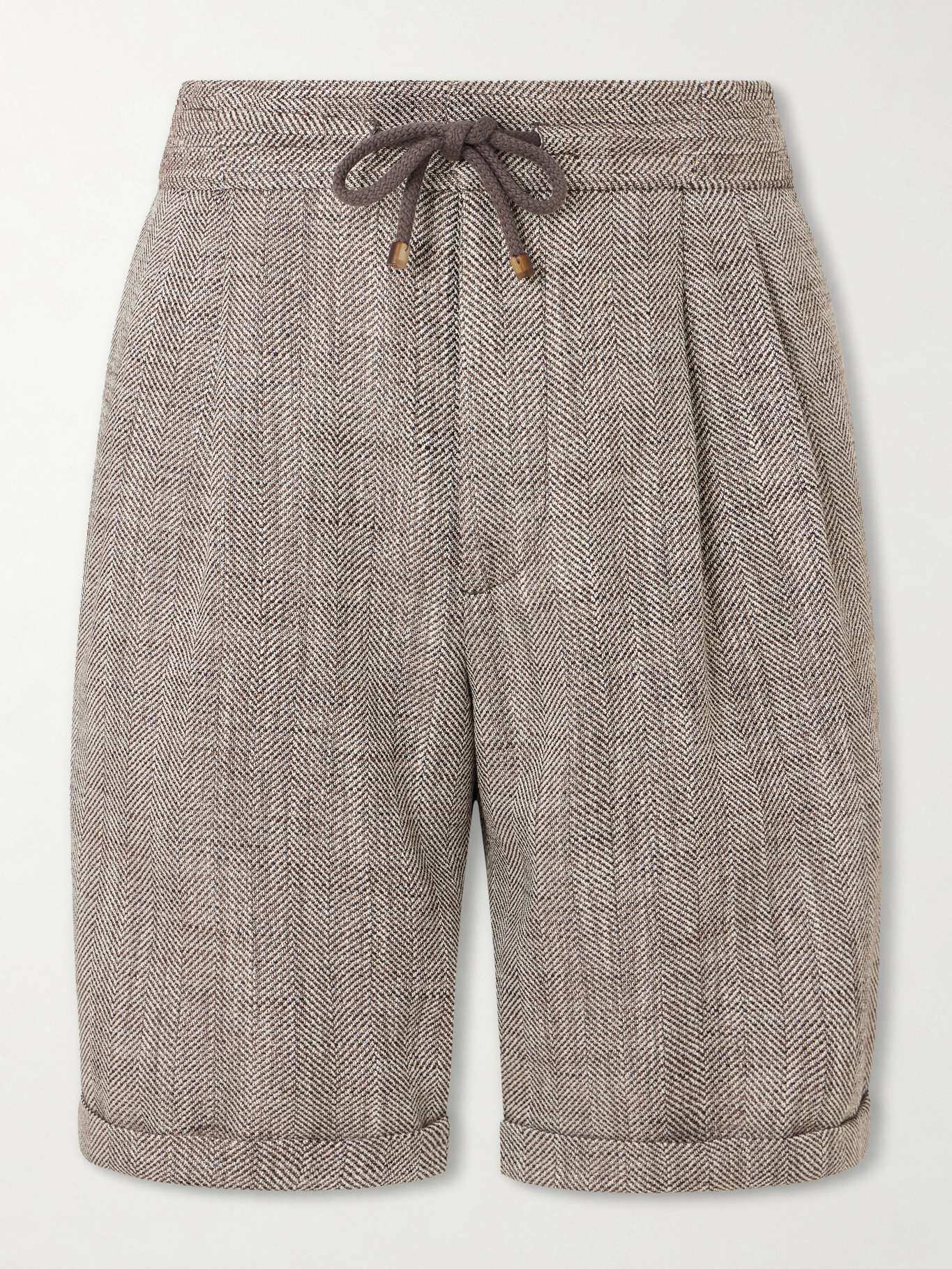 EXCLUSIVE AT MR PORTER.Tailored from a silk, linen and cotton-blend, these bermuda shorts by Brunello Cucinelli balance refinement with ease. The mid-rise is defined by soft pleats and an adjustable drawstring waistband, while turned-up cuffs lend structure to the relaxed, knee-length silhouette.