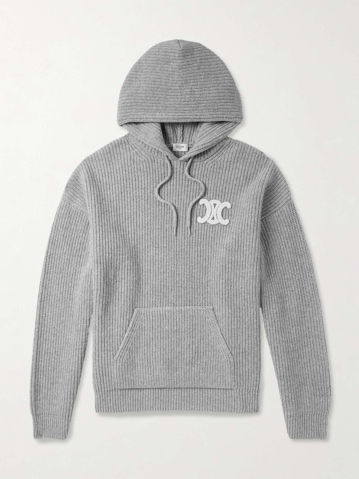 CELINE Logo-Appliquéd Ribbed Wool Hoodie