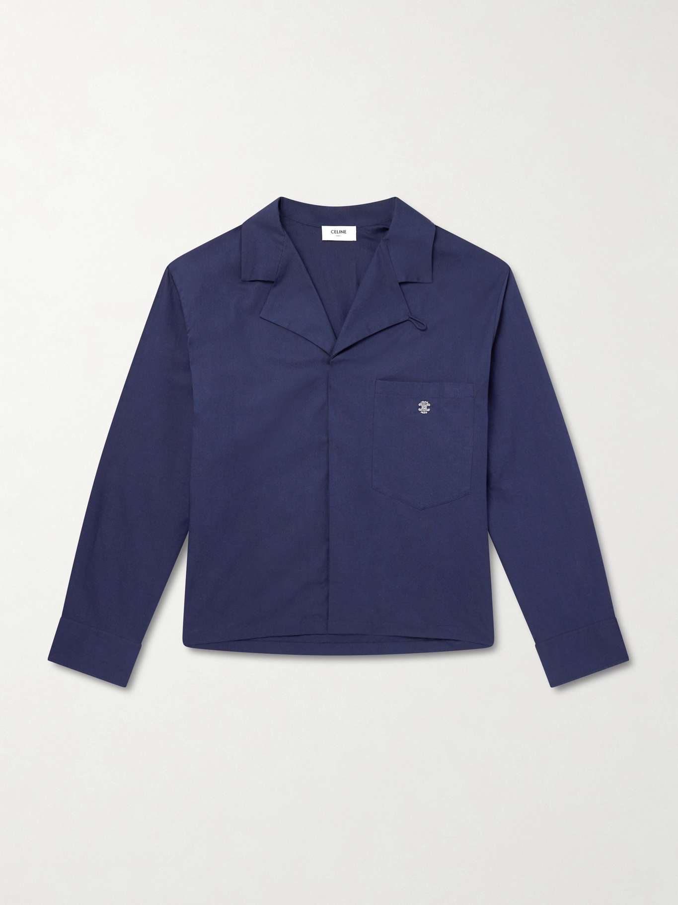 CELINE Logo-Embroidered Cotton and Linen-Blend Shirt