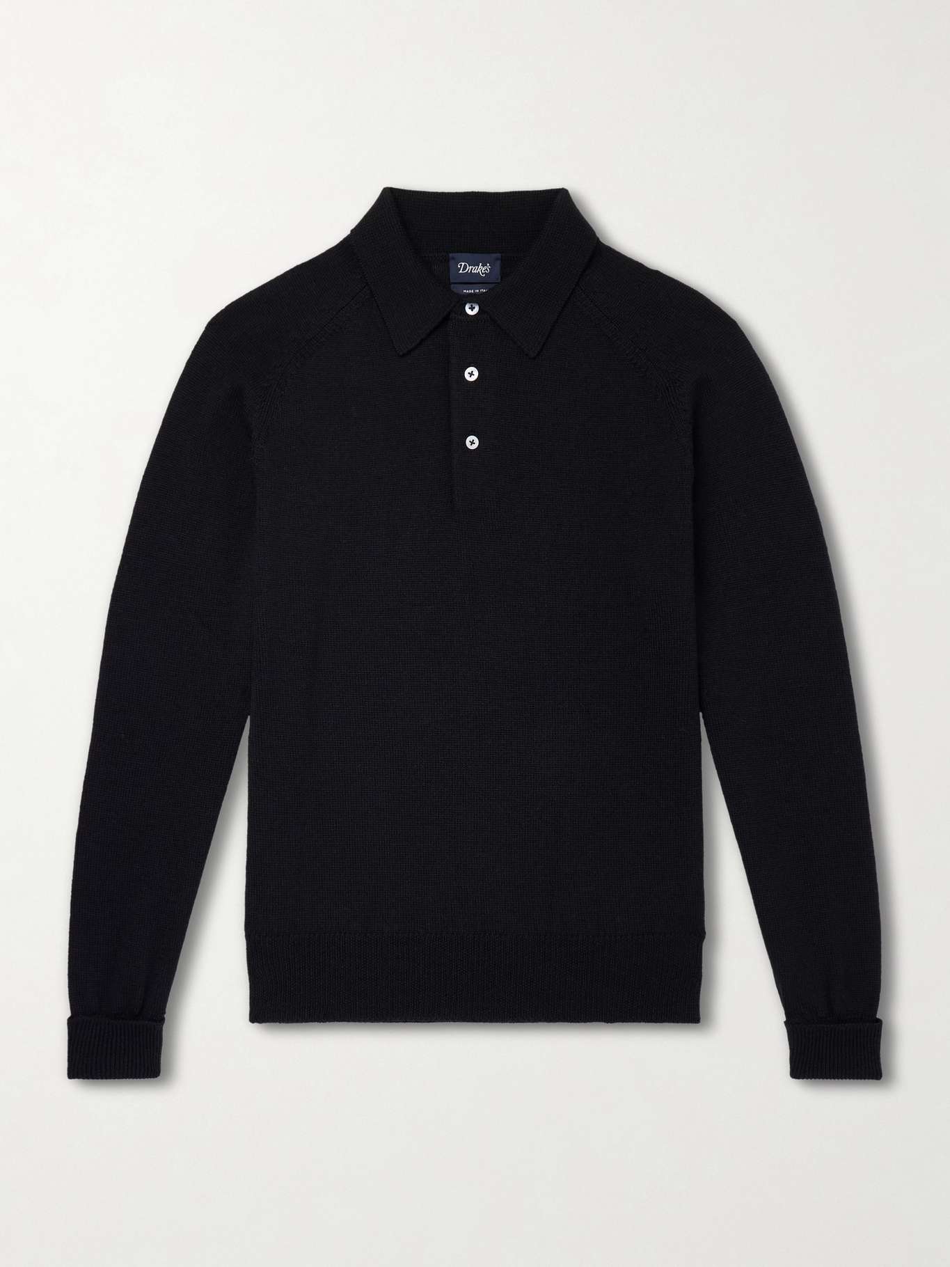 Drake's polo shirt is knitted from a merino wool with an effortless drape. It has a classic collar, ribbed trims and fastens with mother-of-pearl buttons.