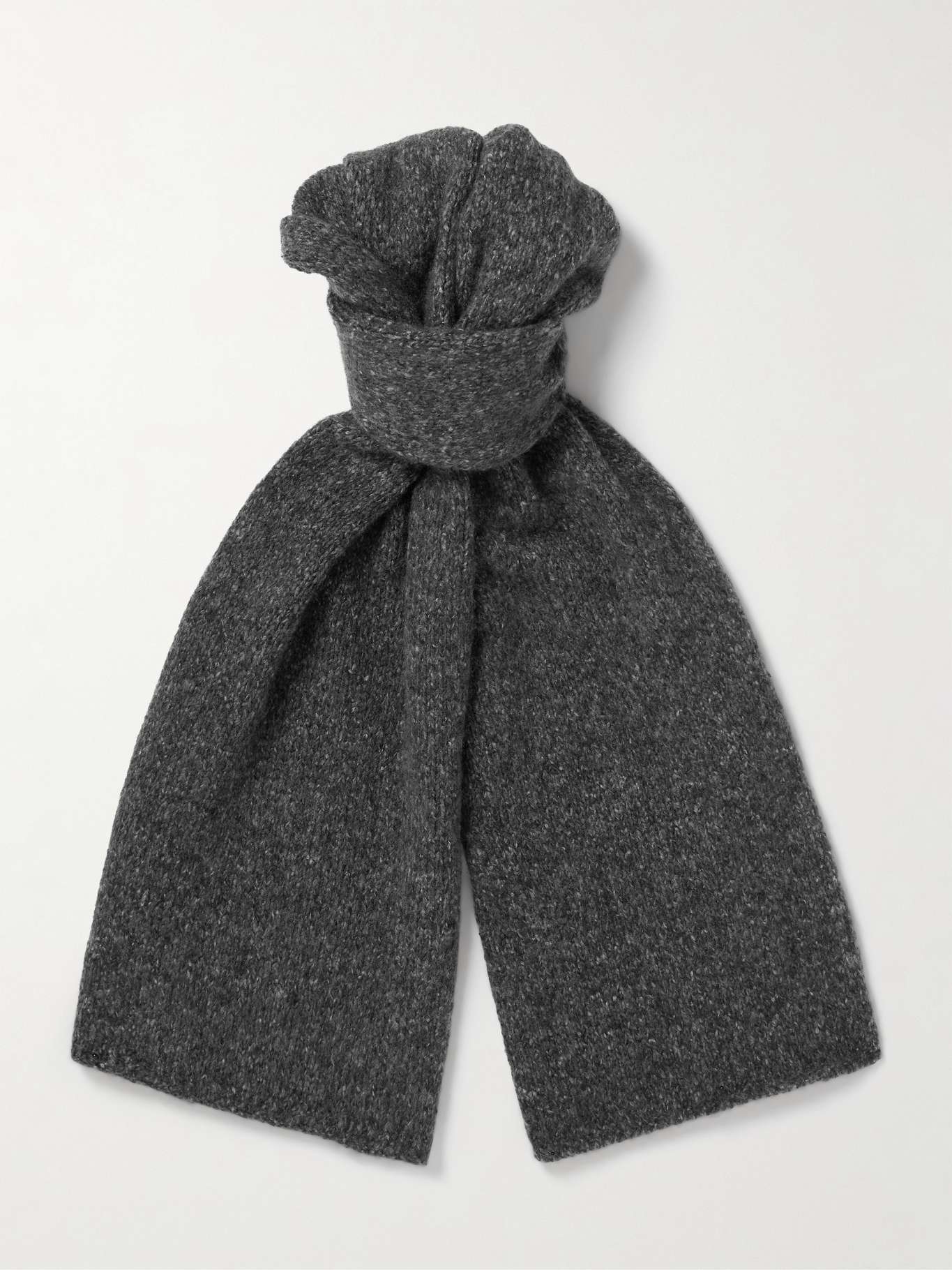 Johnston of Elgin's scarf has been made in Scotland from a cashmere and silk-blend that's brushed for an even softer handle. The dark-grey and white mélange will go with practically all your outerwear.
