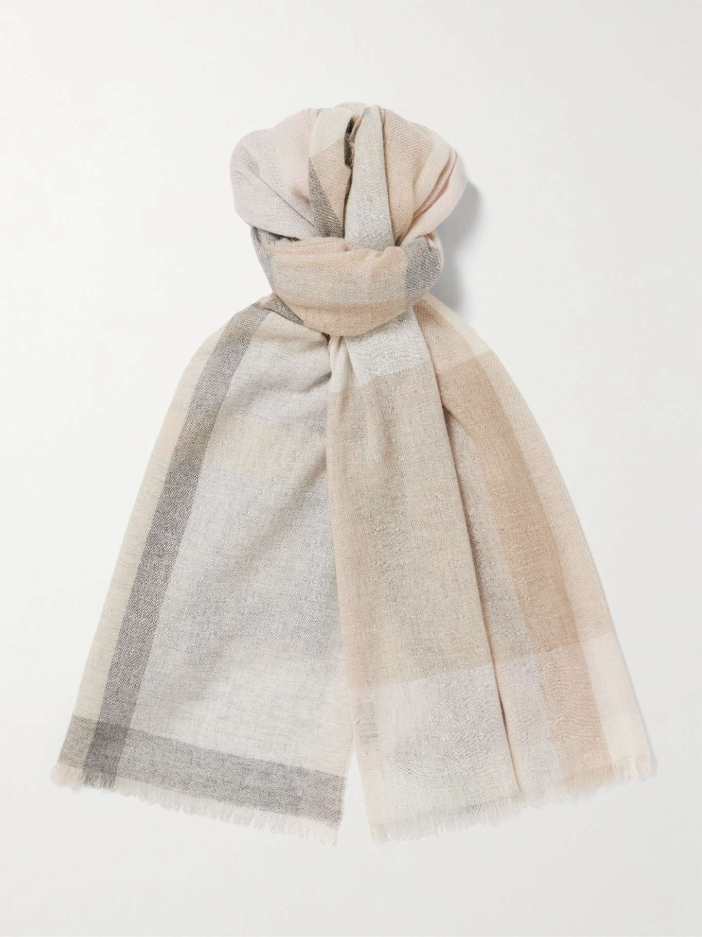 JOHNSTONS OF ELGIN Frayed Checked Cashmere Scarf