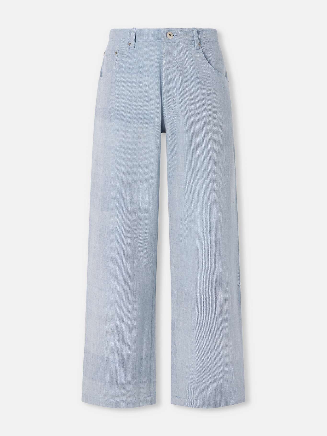 Kardo’s ‘Rupinder’ jeans celebrate traditional Indian craftsmanship through small-scale production. Made from cotton denim in a light blue ‘Sky’ wash, they feature wide legs and pair effortlessly with tees or shirts for a relaxed, casual look.