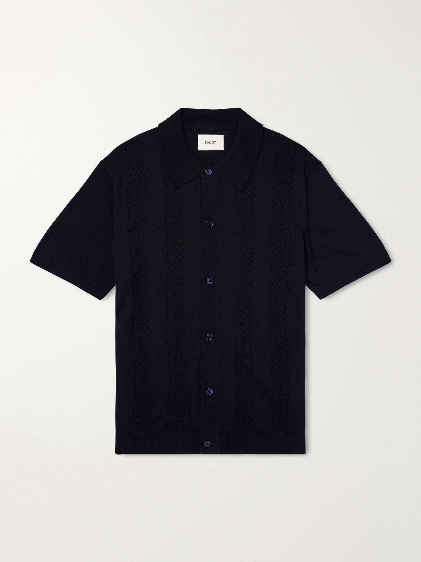 NN07 excels at combining minimalism with exceptional quality. Striped with delicate open-knit detailing, this 'Thor 6584' cardigan is made from wool-blend using a fine gauge and has a polo collar. Wear it casually over a tee and jeans or dress it up with a collared shirt and chinos.