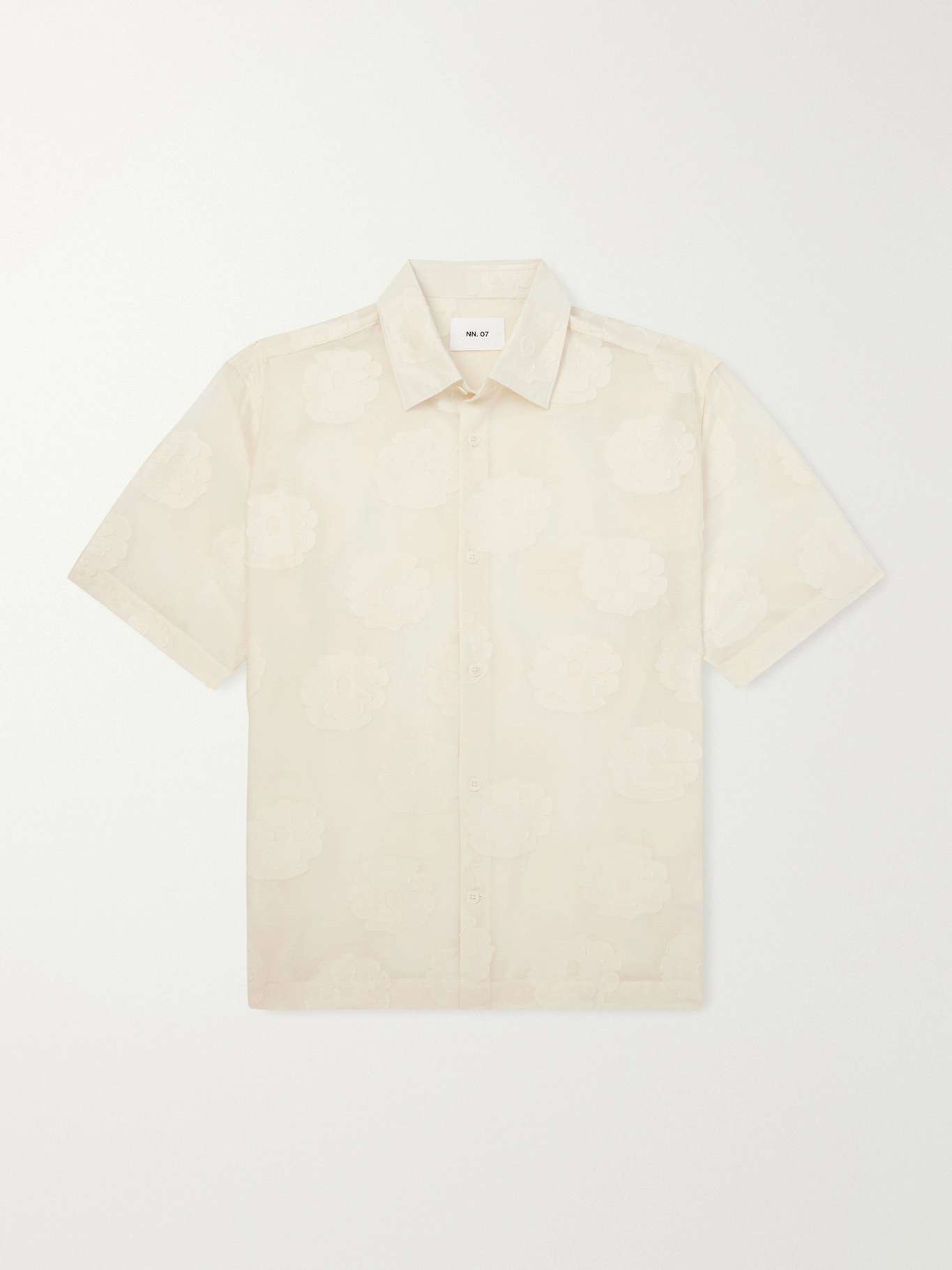 NN07's 'Freddy 50045' shirt is embroidered with florals that look as if they've been drawn by hand. It's made from organic cotton-blend that drapes fluidly and tailored with dropped shoulders and a classic collar.