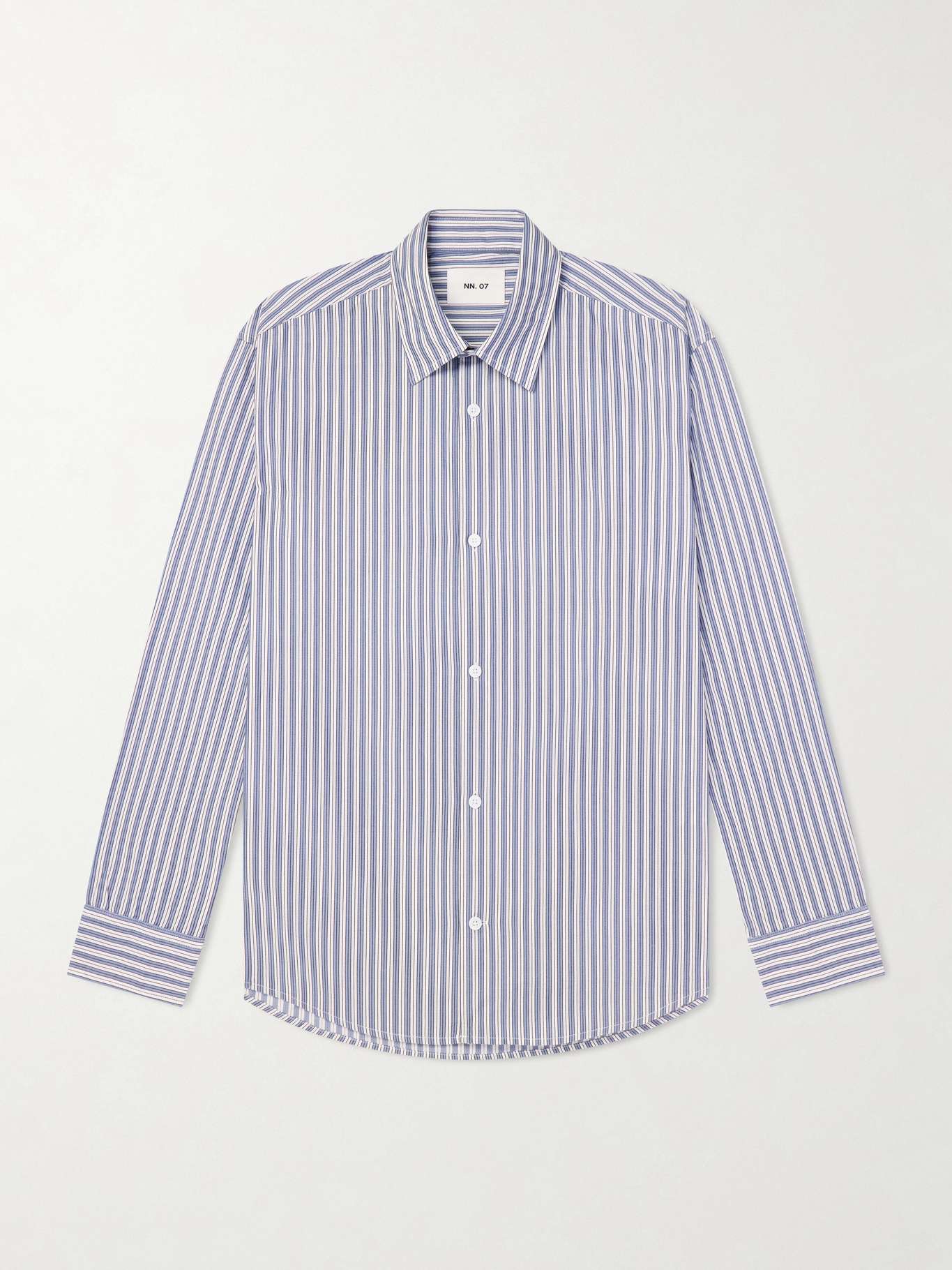 Cut from lightweight cotton, NN07's ‘Freddy 5973’ shirt is patterned with fine vertical stripes that elongate the silhouette. Tailored in a regular fit, it’s finished with a classic collar and buttoned cuffs, allowing the crisp cloth to hold a clean, easy line.