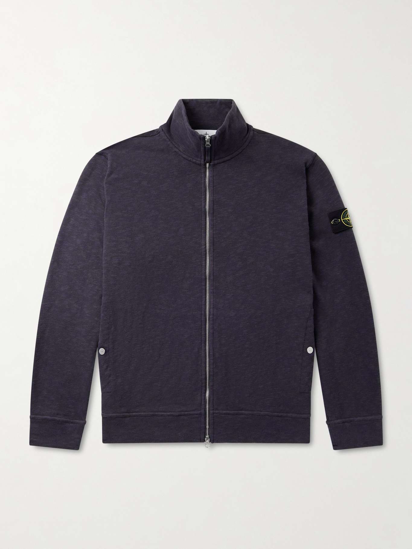 STONE ISLAND Logo-Appliquéd Cotton Zip-Up Sweatshirt
