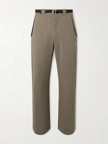 Slim-Fit Straight-Leg Logo-Embroidered Belted Cotton-Blend Twill Trousers