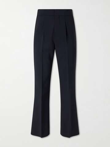 Flared Pleated Wool-Blend Trousres