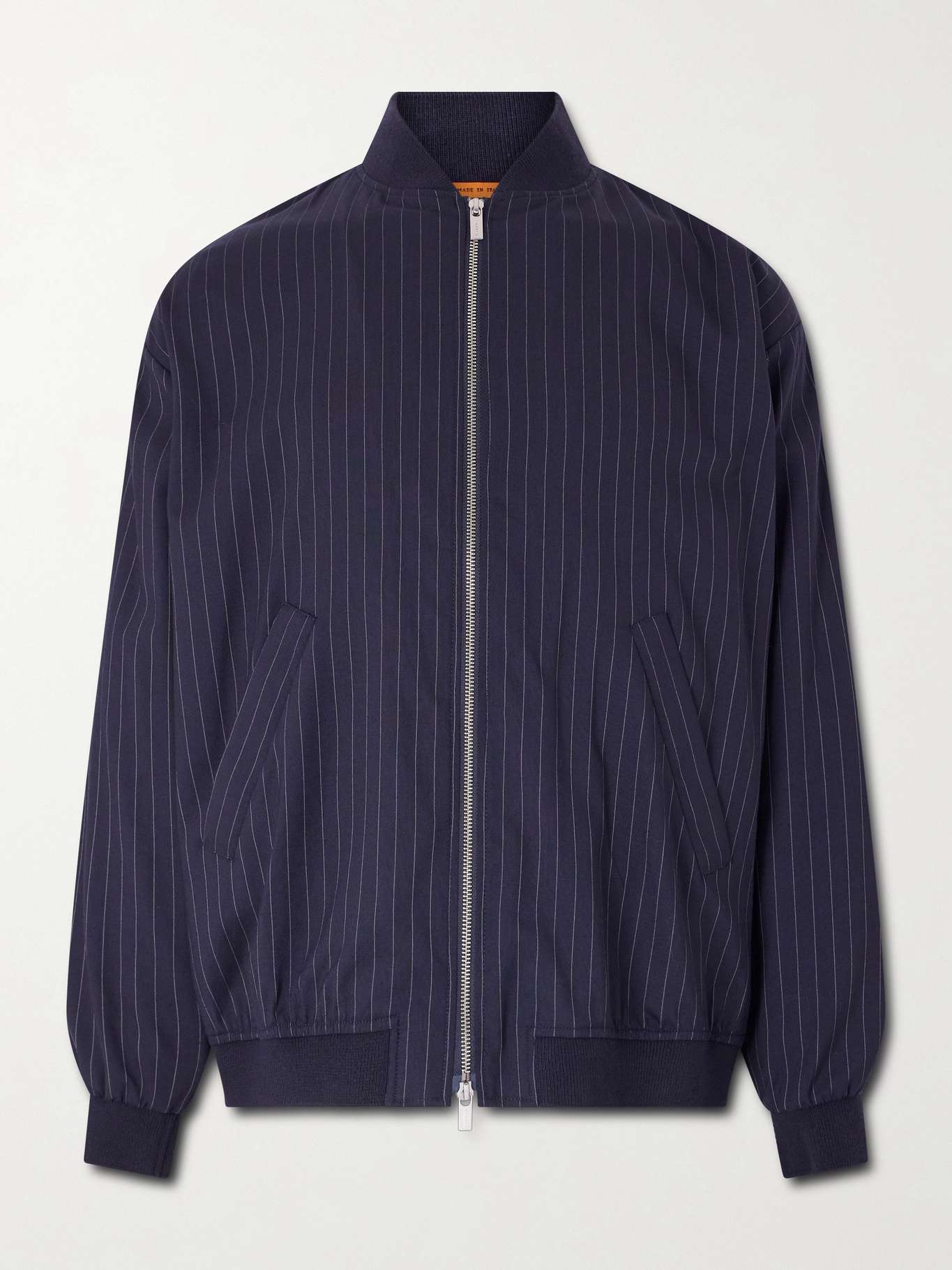 The style heritage of Barena's native Venice inspires its sophisticated take on dressing. This 'Gabier Fulgor' bomber jacket is cut from wool-blend that's pre-washed for softness and patterned with subtle stripes. It's perfect for layering over formal shirts.