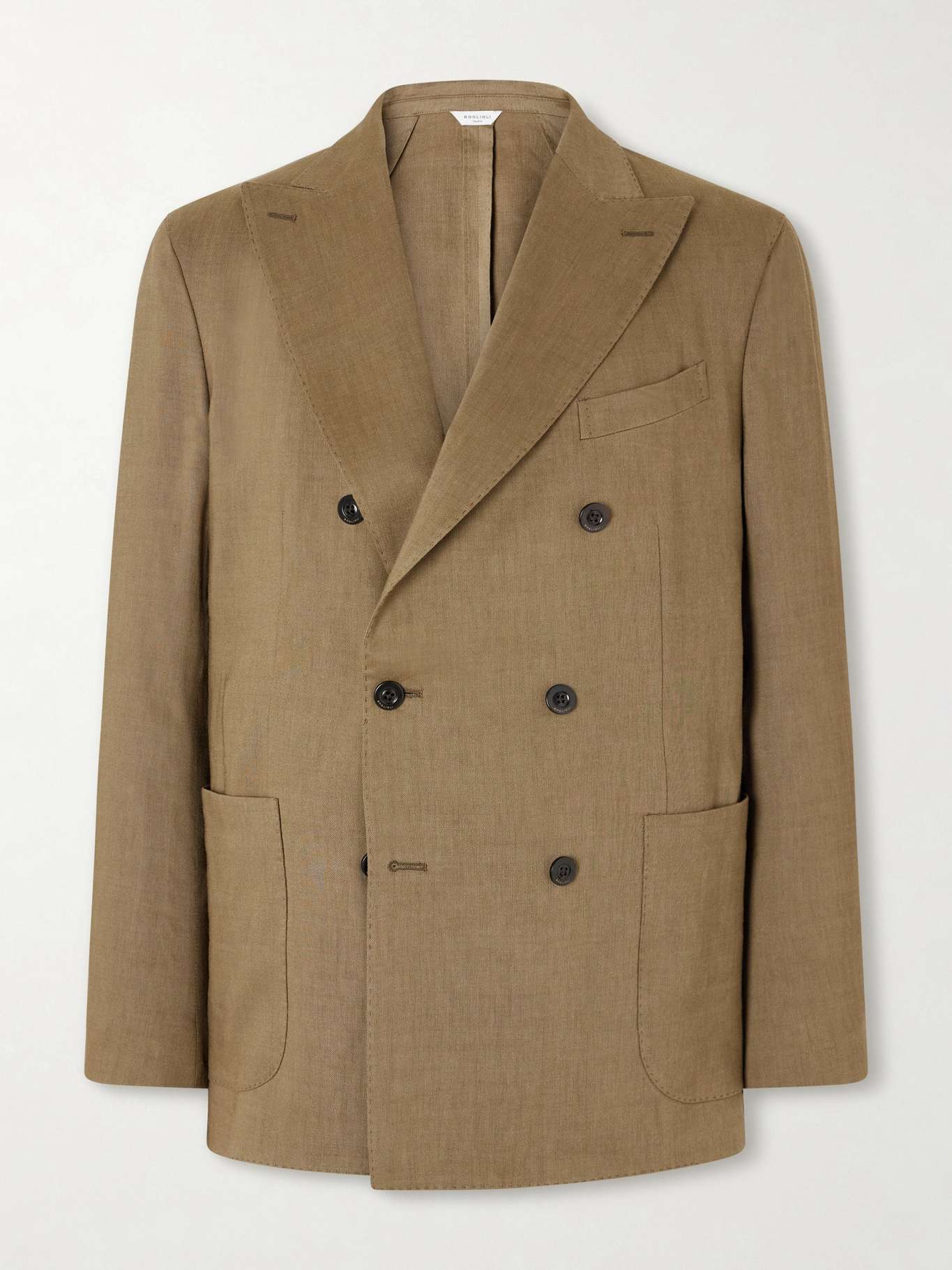 BOGLIOLI Double-Breasted Linen, Virgin Wool and Mohair-Blend Suit Jacket