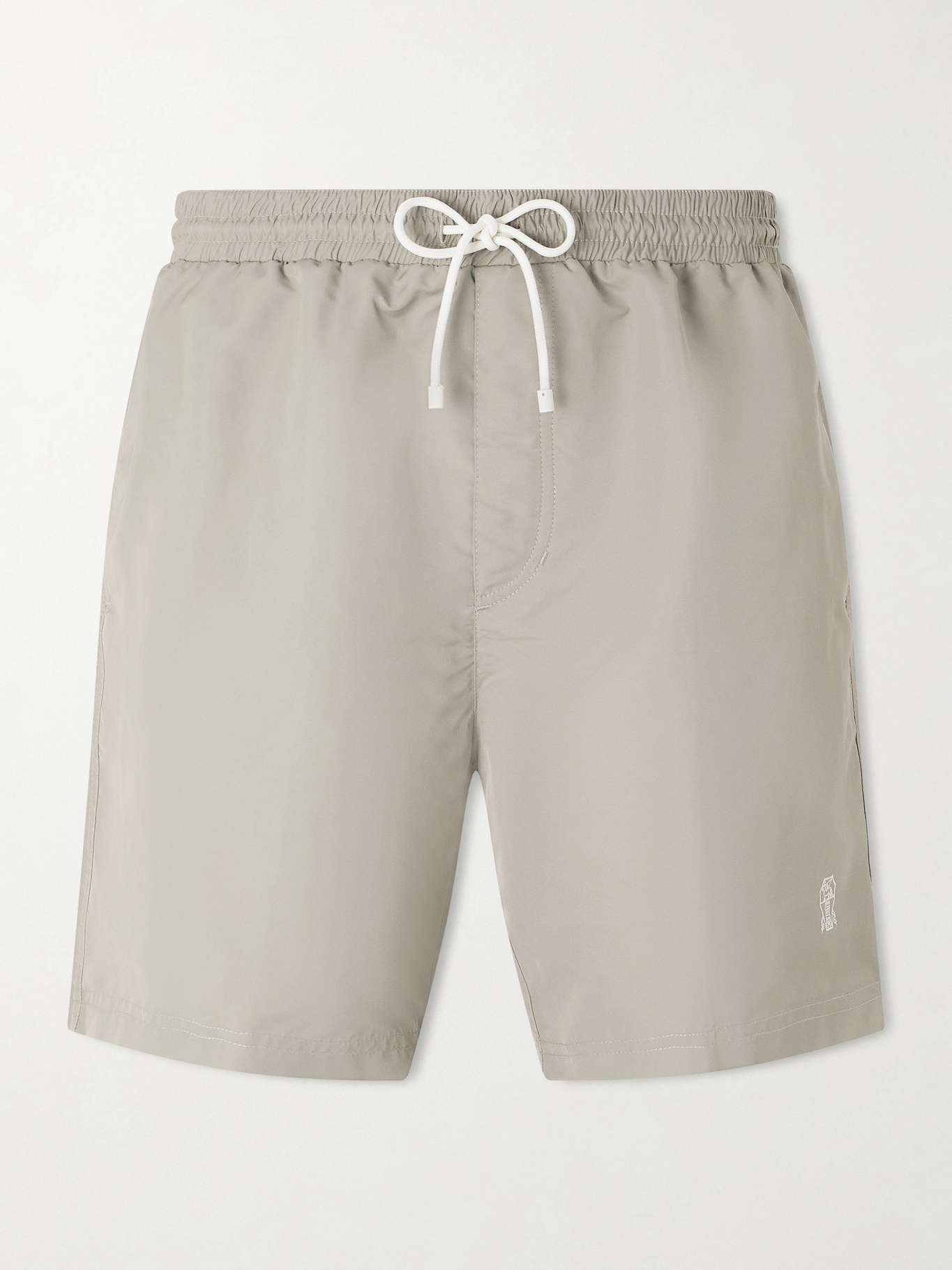 BRUNELLO CUCINELLI Straight-Leg Mid-Length Logo-Embroidered Swim Shorts