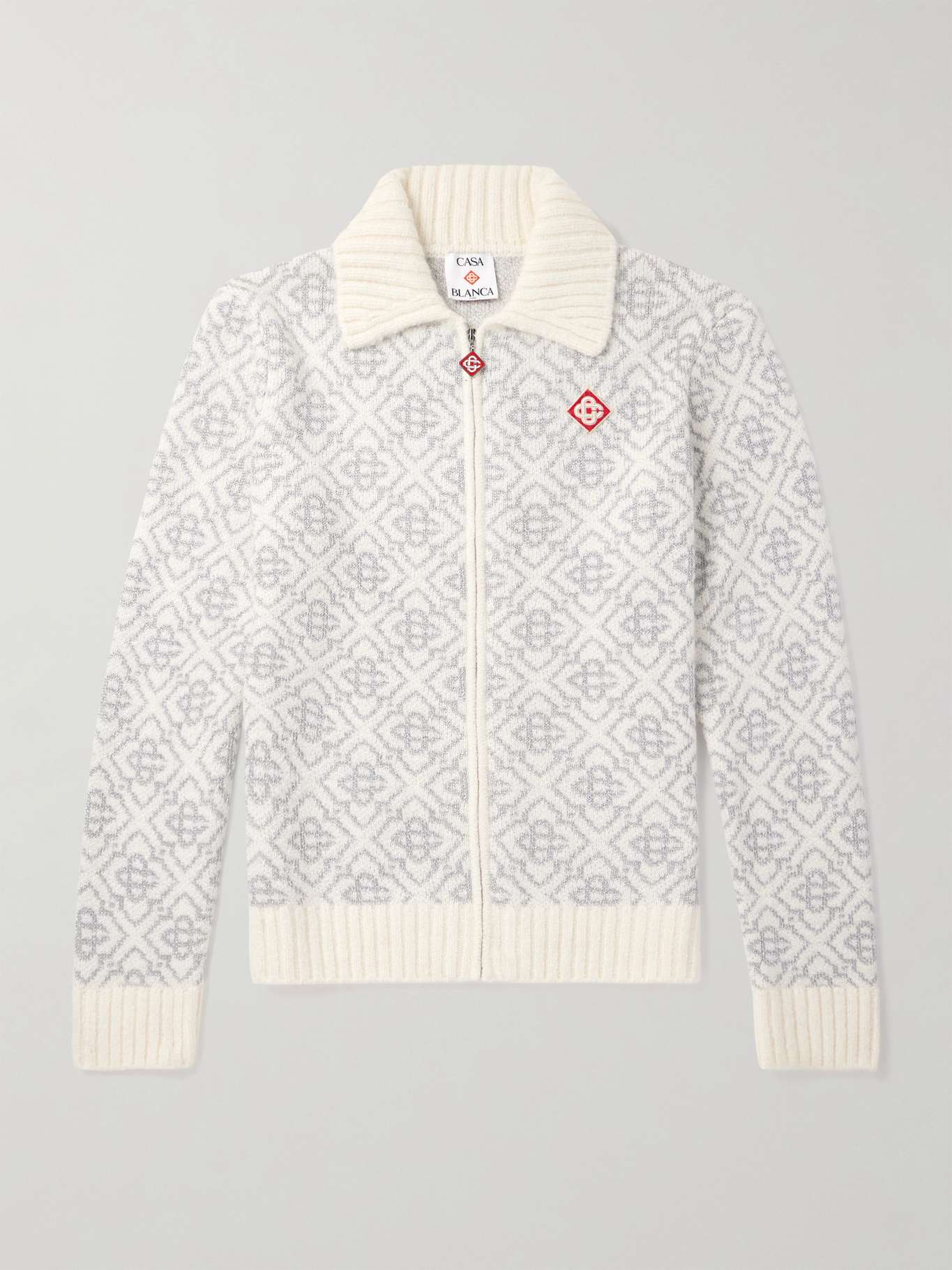 Casablanca's plush cardigan is jacquard-knitted with the brand's monogram. Inspired by après-ski, it's made with touches of cotton, wool and mohiar and has wide, ribbed trims.