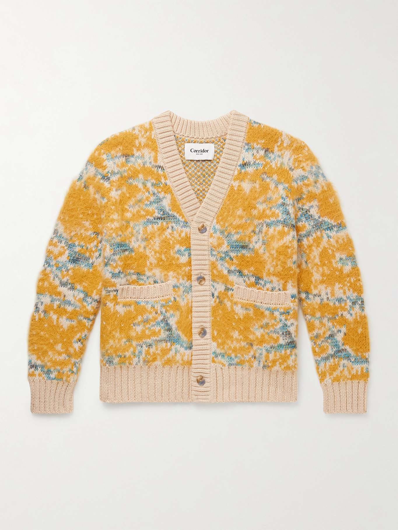 Corridor's cardigan is jacquard-knitted with a vibrant pattern that resembles camouflage. It's made from a cotton-blend with plenty of alpaca and a touch of wool for warmth.
