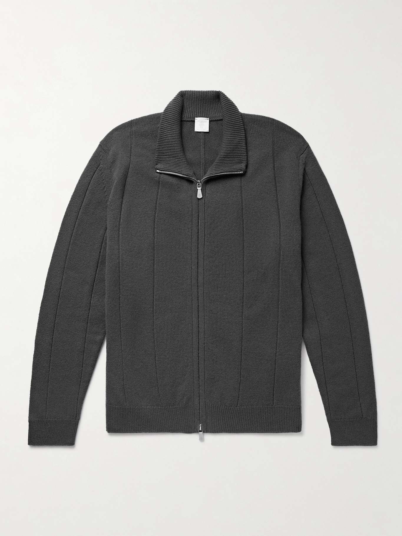 ELEVENTY Ribbed Wool Zip-Up Cardigan