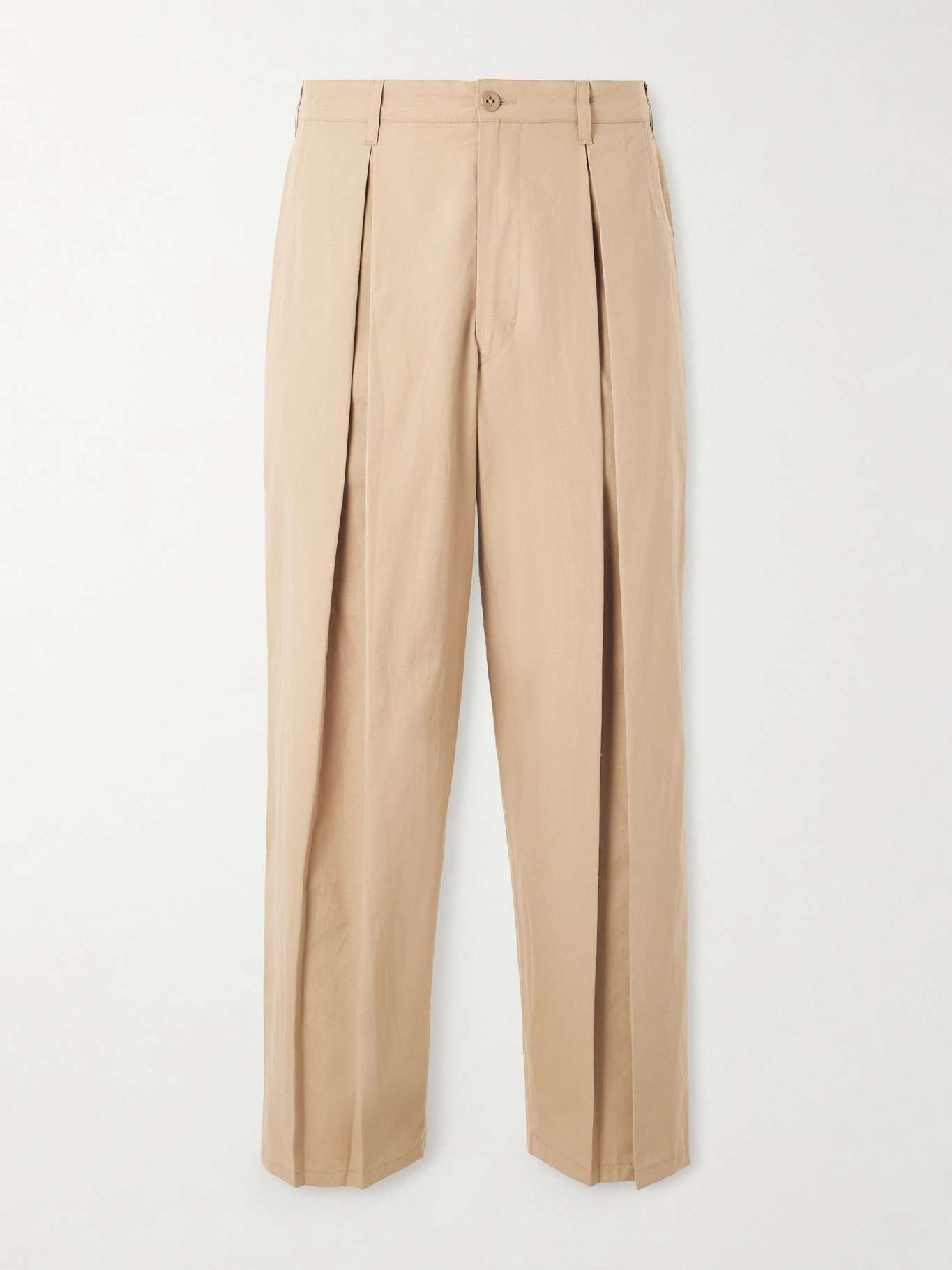 MONITALY Ekusy Wide-Leg Cropped Pleated Cotton Trousers