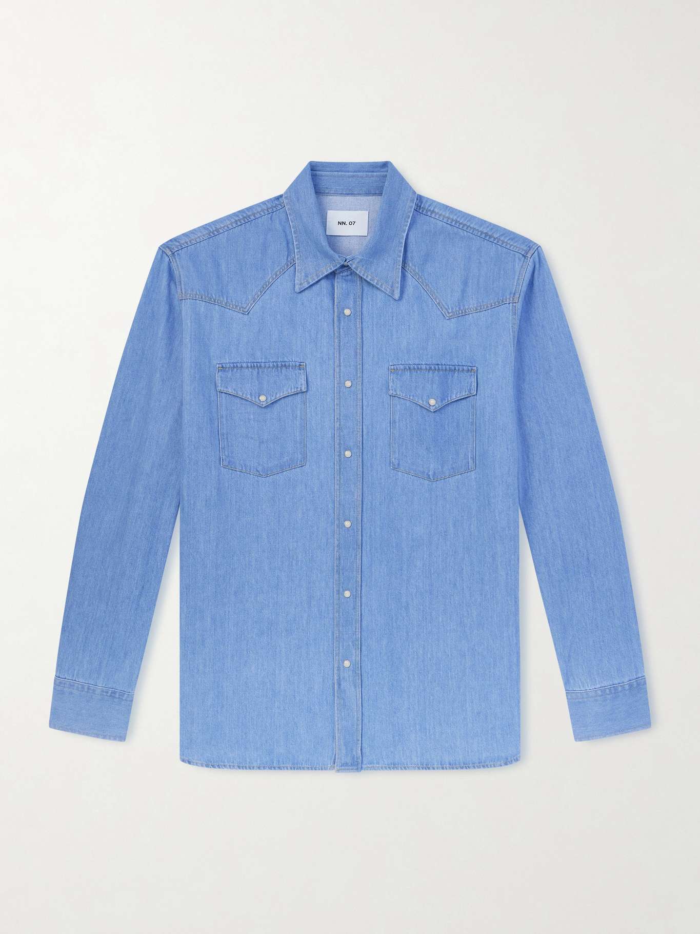 NN07's 'Ricky 50015' shirt nods to classic Western styles. Made from crisp denim, it features a pointed yoke, chest flap pockets and iridescent snap fastenings.