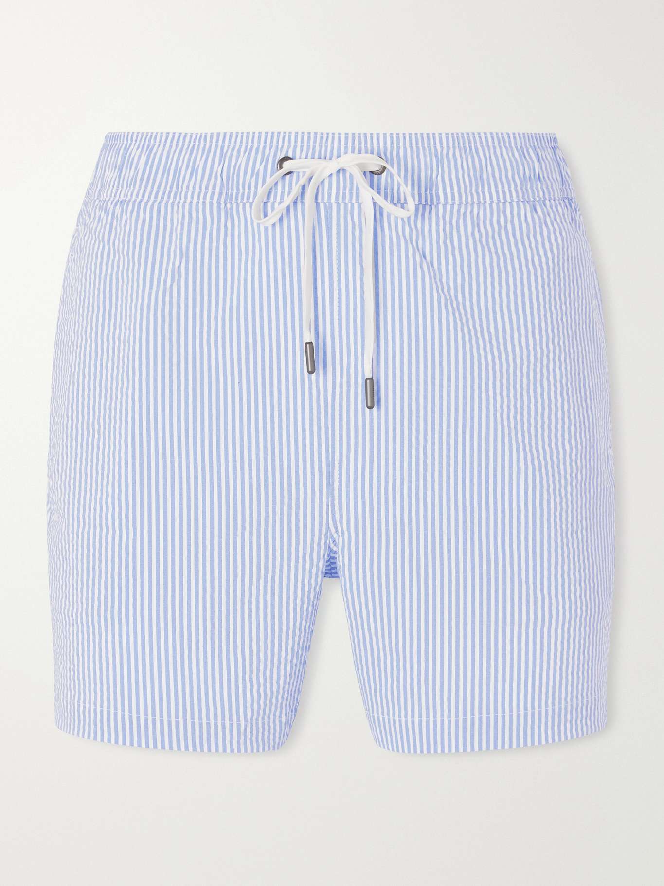 ONIA Charles Straight-Fit Mid-Length Striped Seersucker Swim Shorts