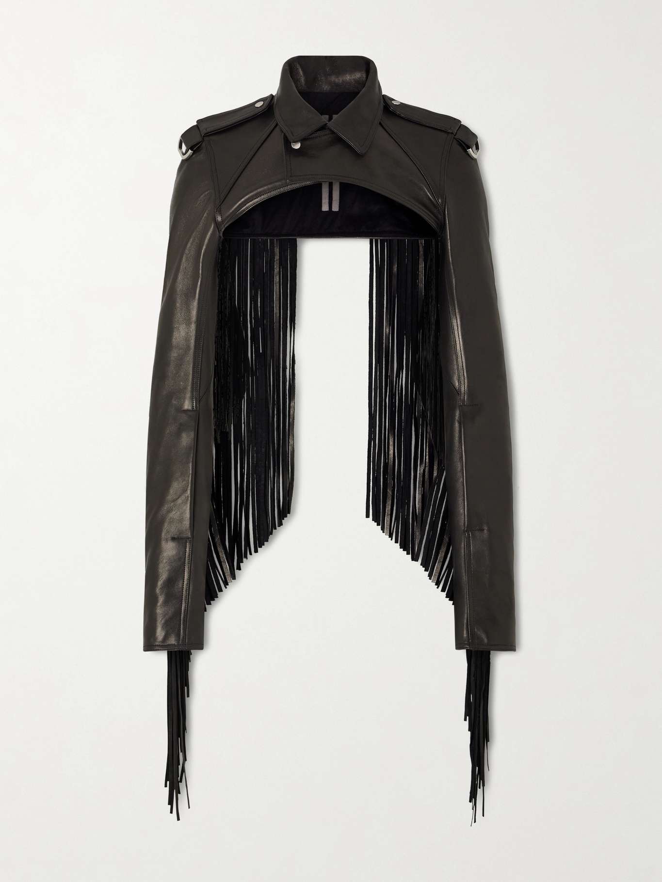 RICK OWENS Microbiker Cropped Fringed Leather Jacket