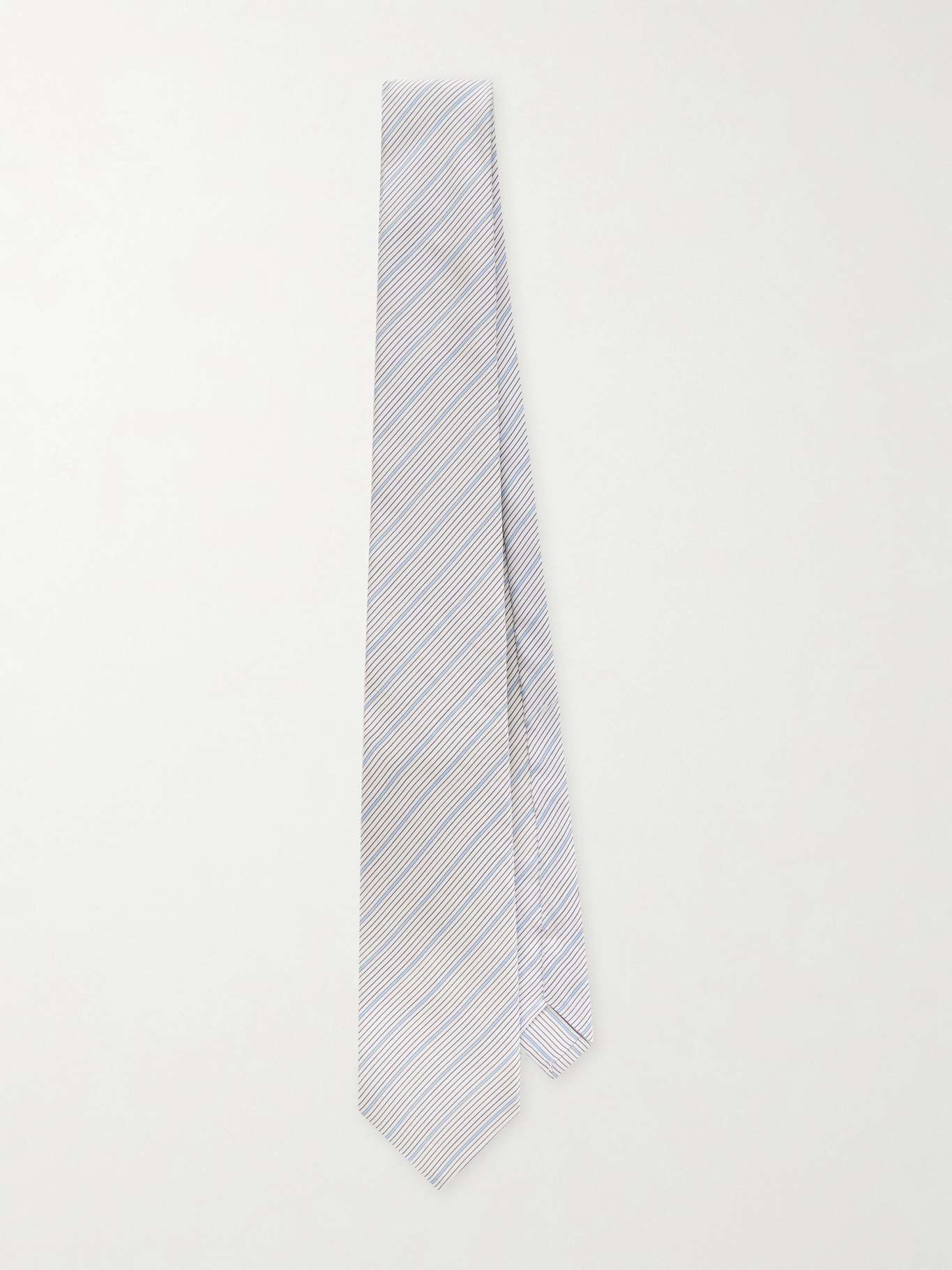 SAINT LAURENT 7cm Striped Silk-Voile Tie