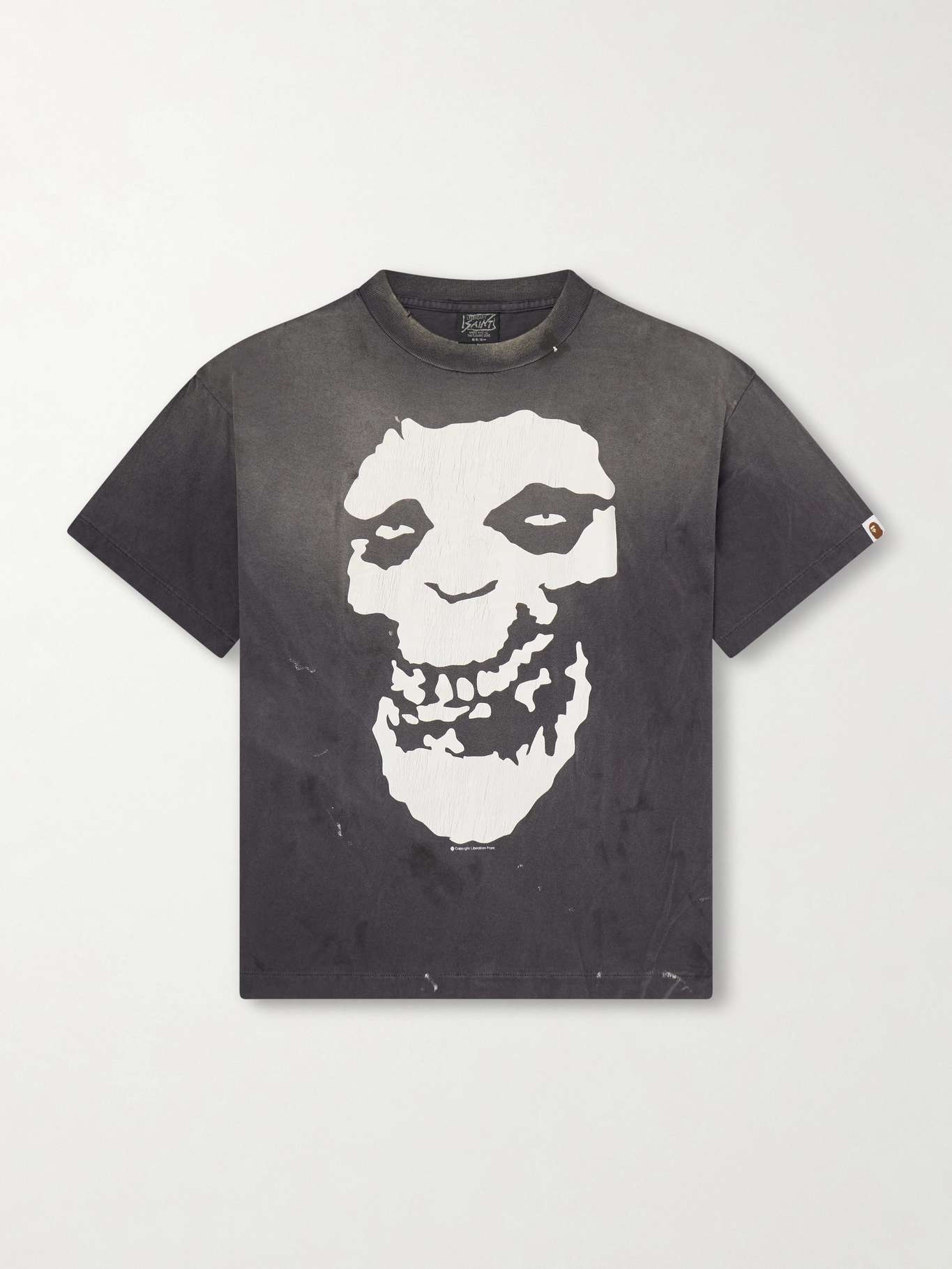 SAINT Mxxxxxx's collaboration with BAPE® draws on punk and streetwear references. This T-shirt is cut from distressed cotton-jersey with a faded skull graphic and an appliquéd logo at the sleeve.