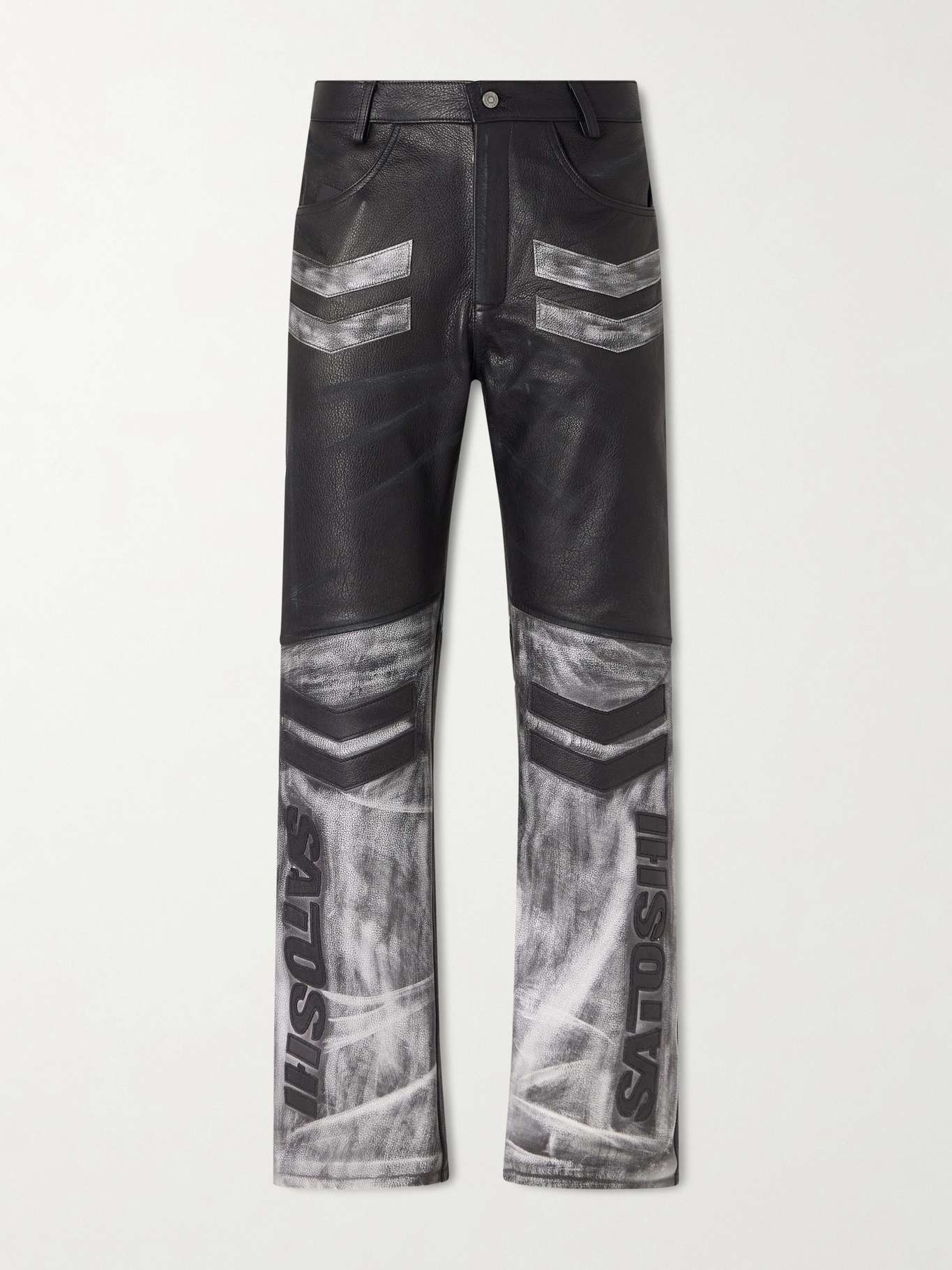 SATOSHI NAKAMOTO 2.0 Moto Appliquéd Leather Trousers