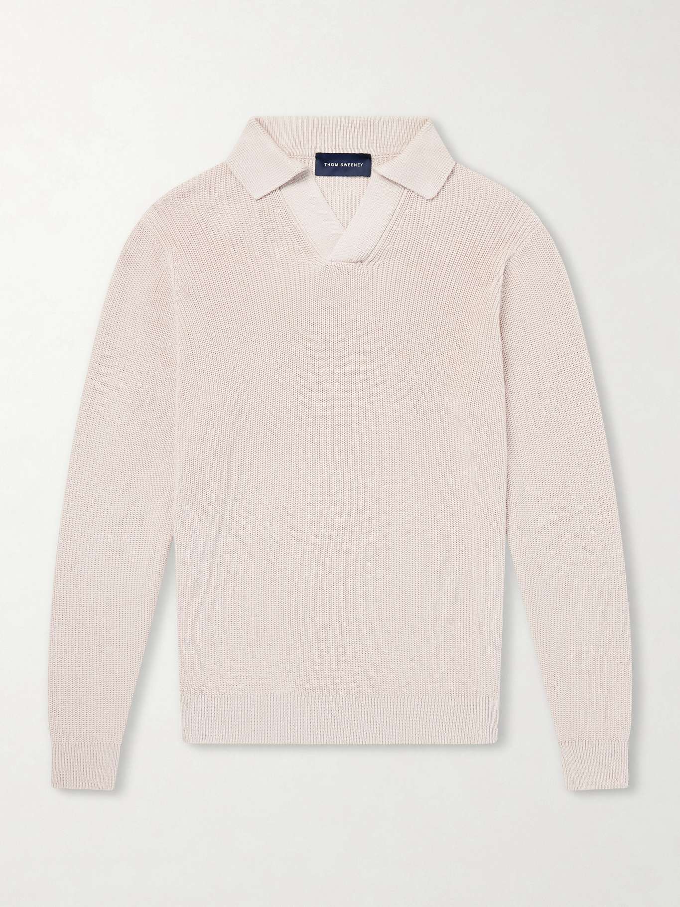 Thom Sweeney’s wide-gauge 'Skipper' polo is knitted from cotton for a soft, breathable handle. Cut in a relaxed shape, it features a laid-back open collar and long sleeves that balance ease with refinement. The textured knit lends subtle depth, making it a polished option for smart-casual dressing.