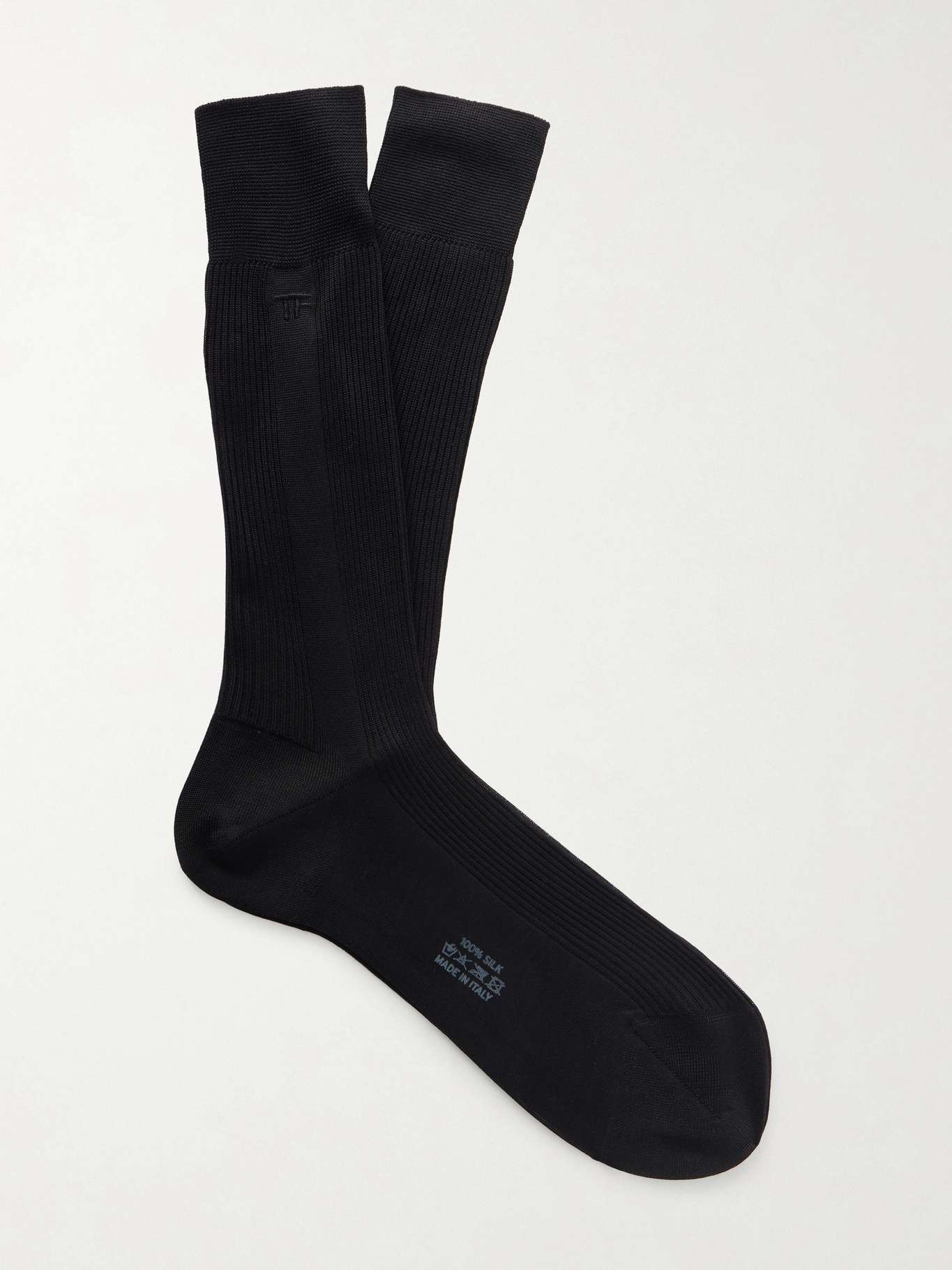TOM FORD Logo-Embroidered Ribbed Silk Socks