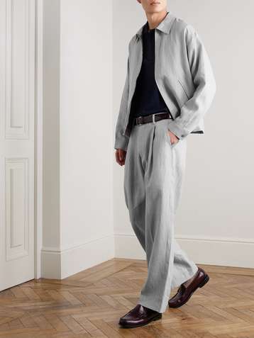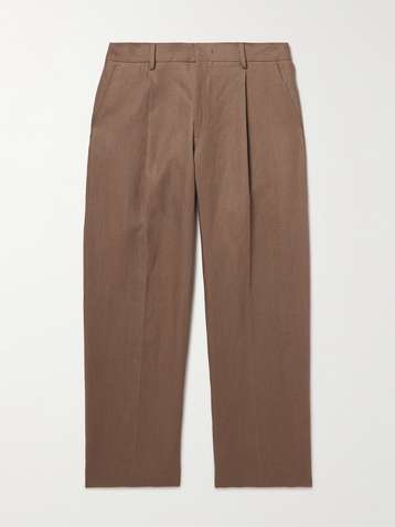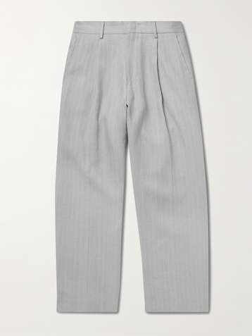 Straight-Leg Herringbone Linen Trousers