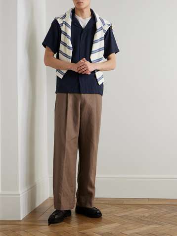 Slim-Fit Straight-Leg Linen and Cotton-Blend Trousers