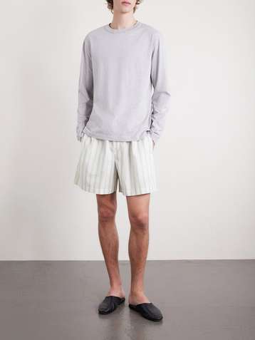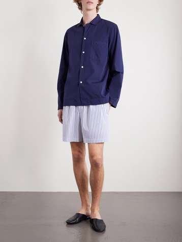Straight-Leg Striped Organic Cotton-Poplin Shorts