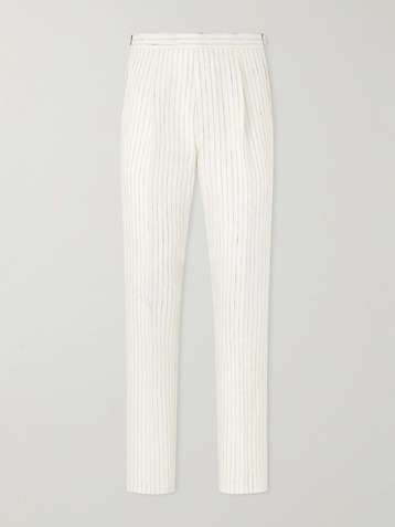 Tapered Pleated Pinstriped Linen Suit Trousers