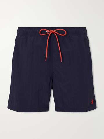 Straight-Leg Mid-Length Logo-Embroidered Swim Shorts