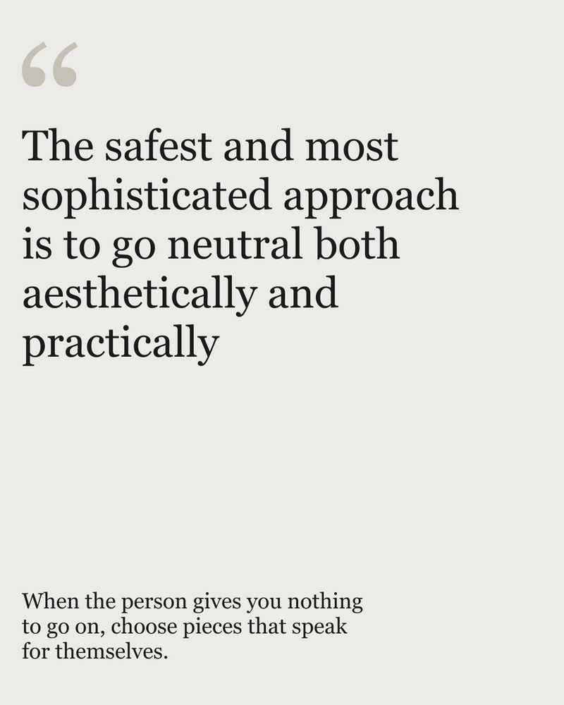 “To shop for someone effectively, you have to have a level of intimacy that men are socialised to avoid,” Forbes-Bell says. “Which means, beyond simply asking them what they want, you need to ask more probing questions to allow you to produce a clearer picture of who they are in order to purchase a gift they’ll love.”