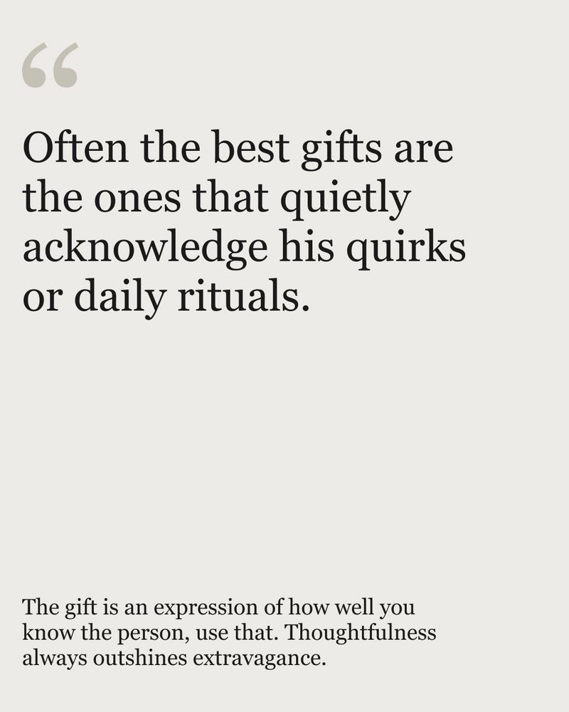 “The recurring dilemma is always the same: what do you give the man who has everything?” says Rachel O-Williams, who, as part of MR PORTER’s crack team of Personal Shoppers (we don’t use the term “elves” here), is well versed when it comes to this situation. “My answer, unfailingly, is thoughtfulness. The trick is to lean into what you already know about him. Don’t overcomplicate it. Often the best gifts are the ones that quietly acknowledge his quirks or daily rituals. The gift is an expression of how well you know the person, use that. Thoughtfulness always outshines extravagance.”