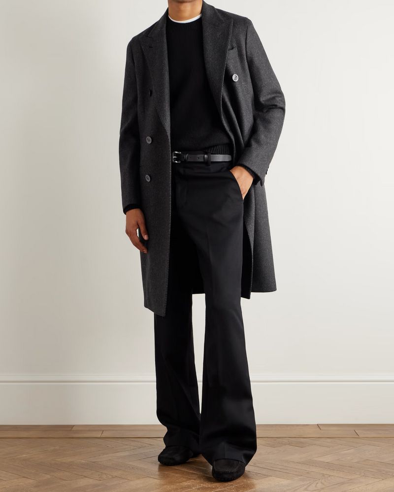 For a century prior, most men’s overcoats reached to at least their knees. But as they found that long overcoats dragged behind them when they entered and exited automobiles, the overcoat climbed up and up. By the turn of the 21st century, the slim-fit revolution – which shrank men’s clothing in every direction – almost made long overcoats disappear completely from high-end boutiques.