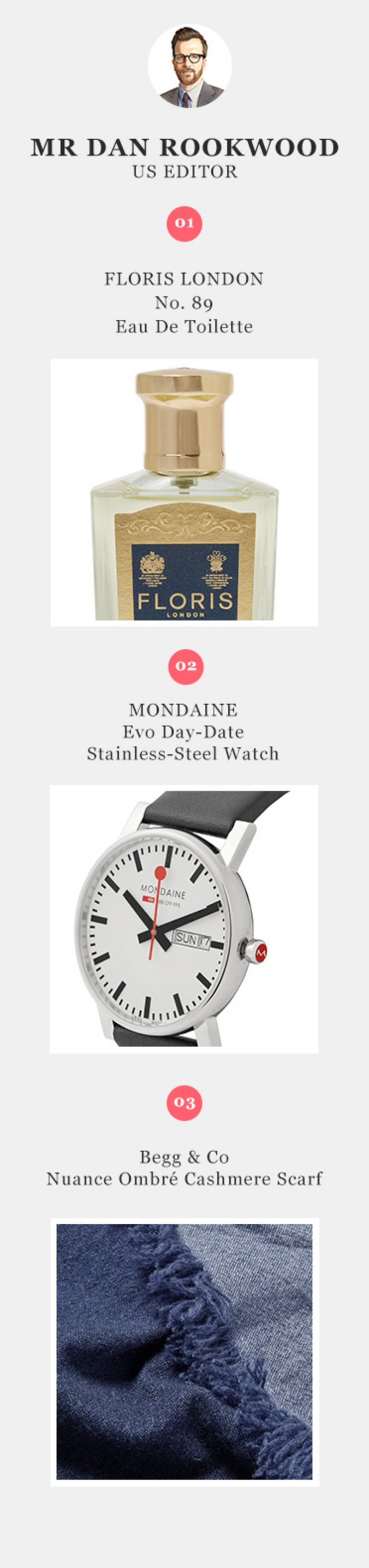 Scientists have discovered connections between pleasant smells and the recall of pleasurable memories stored in the brain’s hippocampus, so if you want to be remembered fondly, find a signature scent. Mine is Floris No. 89 – a masculine scent of cedarwood and vetiver. I prefer the eau de toilette to the aftershave – it is less concentrated but this means you use more and so I need to replenish my supply. Experts suggest applying fragrance to your pulse points – behind the ear and on the wrist. If you do so, you’ll find your leather watchstrap and your cashmere scarf both retain a familiar smell.