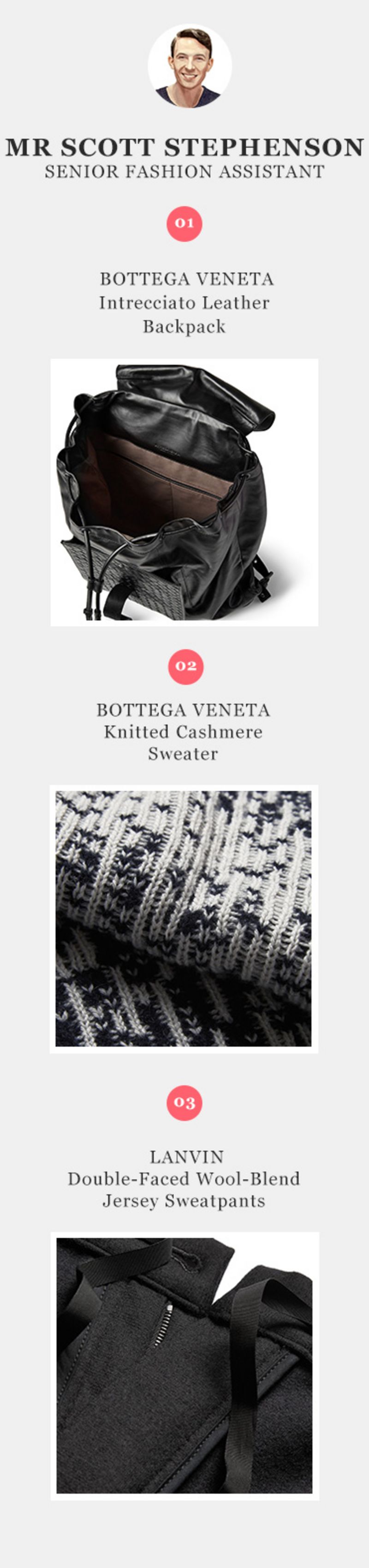 In order to impress myself, I’m going big on the finer things. From a young age I’ve been more inclined to luxury goods (much to the financial trauma of my parents), so the quickest way to my heart is with a black Bottega Veneta backpack, crafted with passion and skill. Add a dense cashmere Bottega knit and Lanvin trousers, and I’ll be more than satisfied.