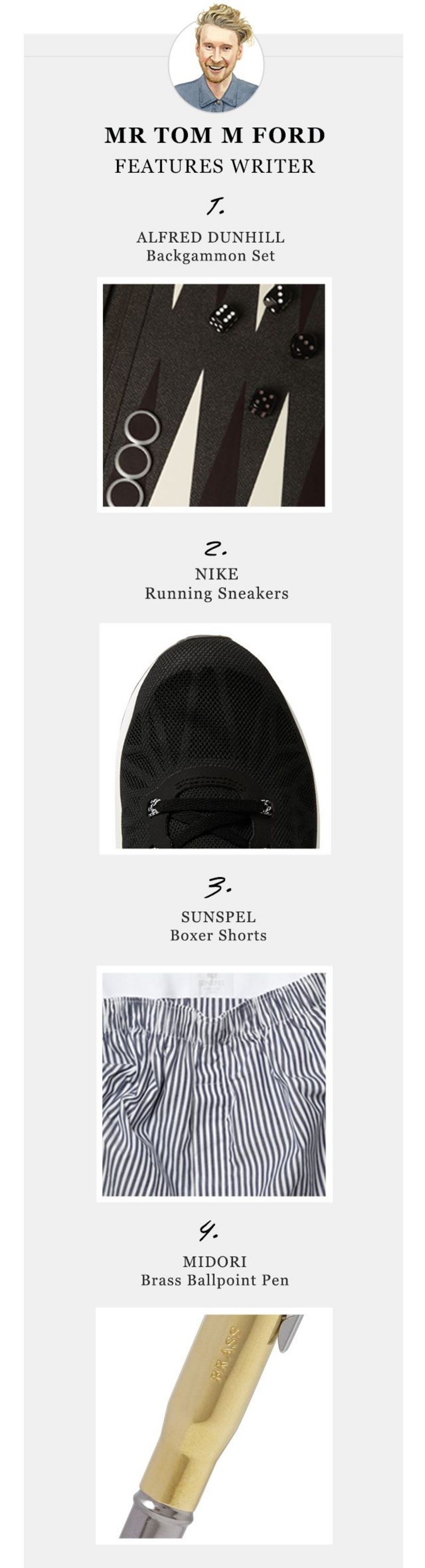 1. Backgammon Set Resolutions seem to serve one of two things: either to increase health or add cultural strings to one’s bow. To stave off my existential misery in January I intend to learn how to play backgammon. I won’t, of course, but if I do, boy will I have ever-so-slightly more to talk about when I’m in the pub breaking my health-related resolutions.