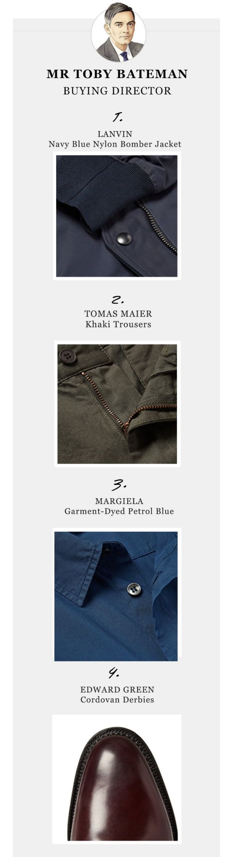 1. Lanvin Navy Blue Nylon Bomber Jacket In the winter months my style retreats into the comfy realms of classical menswear. With spring in the back of my mind, I can freshen up my look in 2015 with some more contemporary pieces. I like this because it is essentially a design classic (stemming from the iconic M-A1 flight jacket) but Lanvin gives it a subtle but contemporary twist with a much deeper knitted hem.