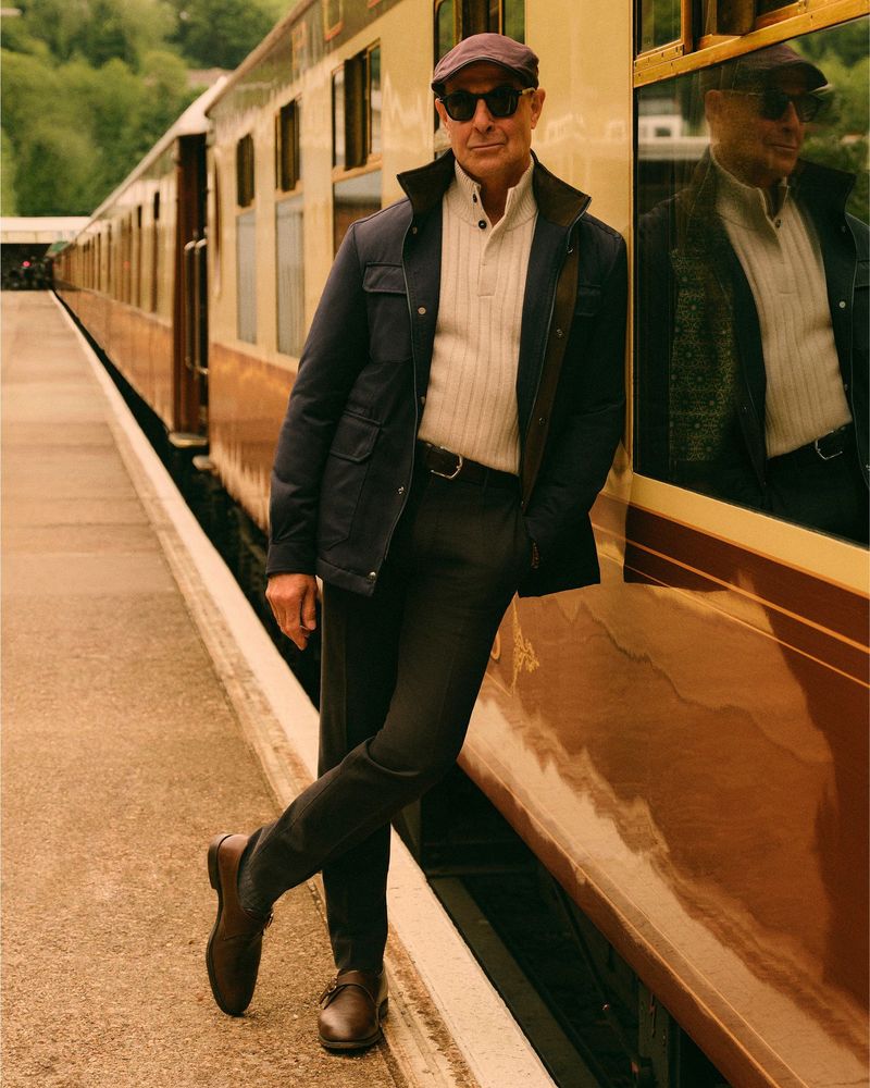 And if that weren’t enough, he’s now turned his hand to clothing. No surprise, really. Whether he’s wandering through the backstreets of an Italian village, grilling a steak at home, or stepping into a limo alongside Meryl Streep while filming The Devil Wears Prada 2, Tucci is always impeccably attired. And now he has collaborated on his own clothing collection with N.Peal, the storied British cashmere brand favoured by Hollywood and worn by everyone from Cary Grant to Daniel Craig.