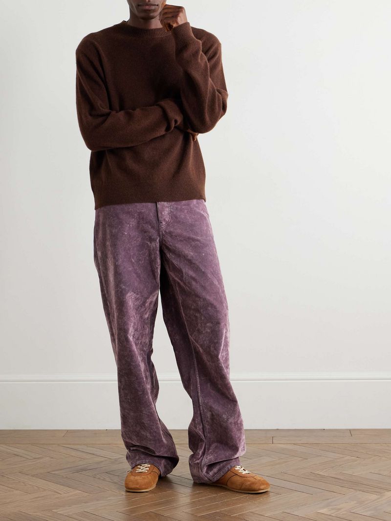 Fisher adds that luxury yarns, such as vicuna, cashmere and camelhair, are all brown in their natural forms, making it a risk-free way of going for a statement fabric. Brown also looks good in harder-wearing materials like twill. Mixing textures with different weights or “naps” is another way to build a rounded brown outfit: think chunky corduroy trousers in chestnut with a lighter cashmere top.