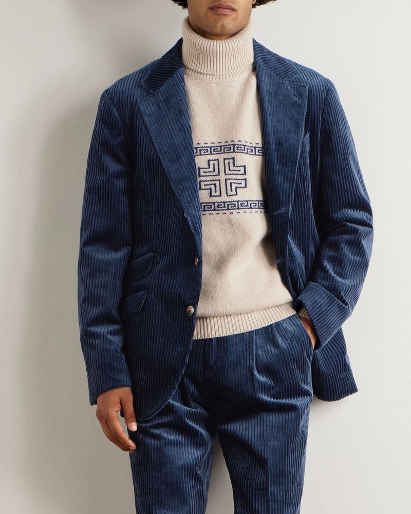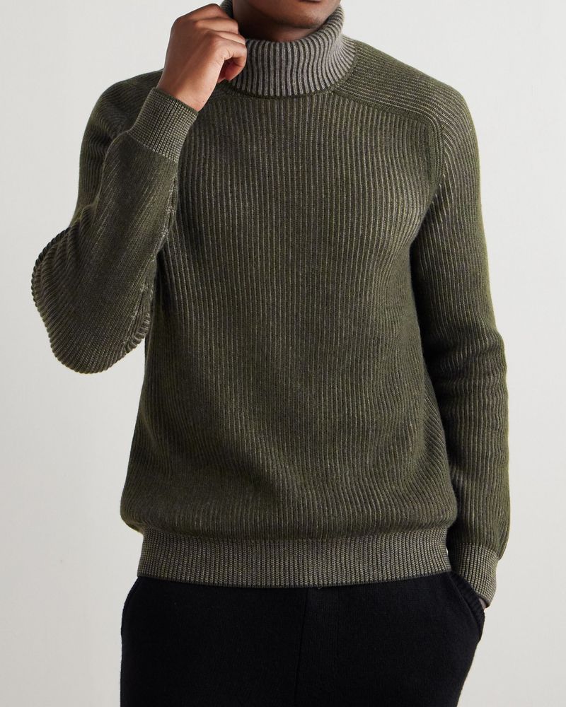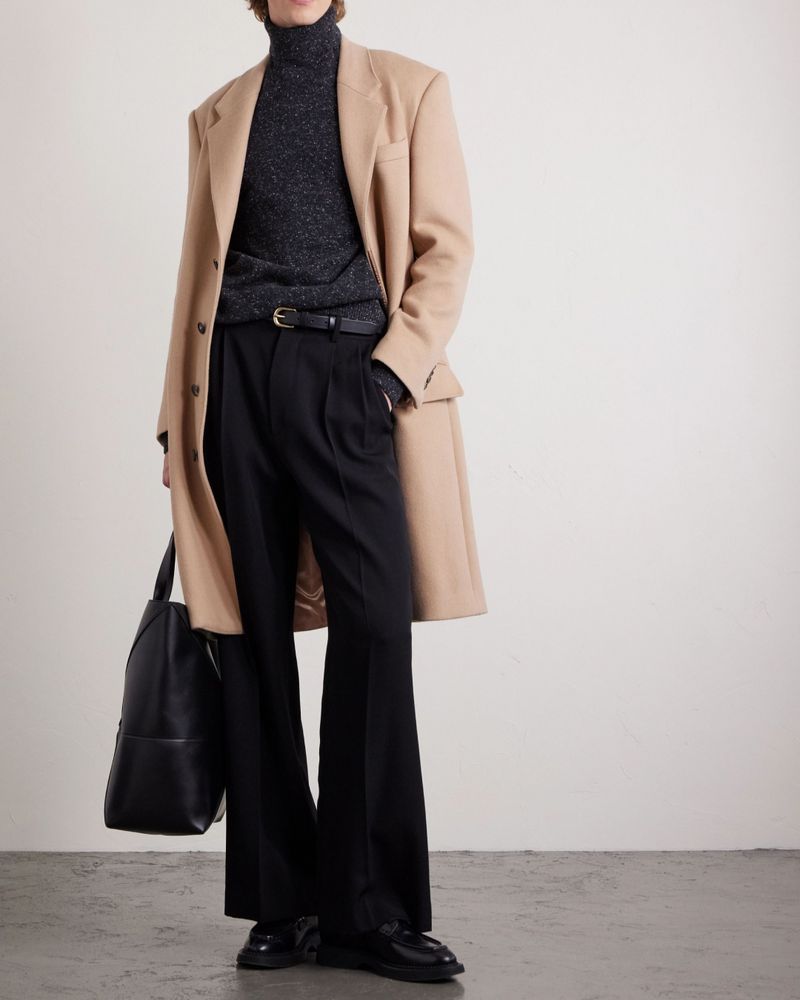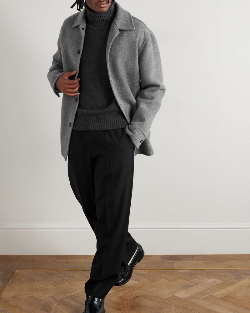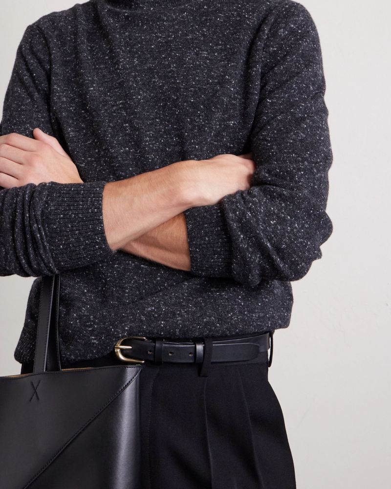 When building your outfit, you’ll want to look at the weight of your turtleneck. “Heavier turtlenecks tend to be the front man, while lightweight iterations usually play a backing role,” says Benedict Browne, Style Director at MR PORTER. While lightweight garments are great for layering with jackets, heavier knits feel more casual. “My style has become a tad more relaxed and off-duty-like in recent years, so the chunky kind have my attention,” Browne says. “Loro Piana’s heavy-duty cable knits make the depths of winter look like a doddle.”