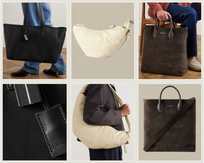 Totes often toe the line between smart and casual, so your choice of bag can single-handedly determine whether you’re going to do your weekly grocery shop at the farmer’s market or, as you should be, to the office. Colourful and utilitarian styles from PROLETA RE ART and C.P. Company will feel right at home in creative workspaces, but you’re likely going to need something different for the boardroom. A suede, vertical style from Mr P. adds volume and depth to a monochrome suit, while TOM FORD’s sleek leather tote keeps things classic.
